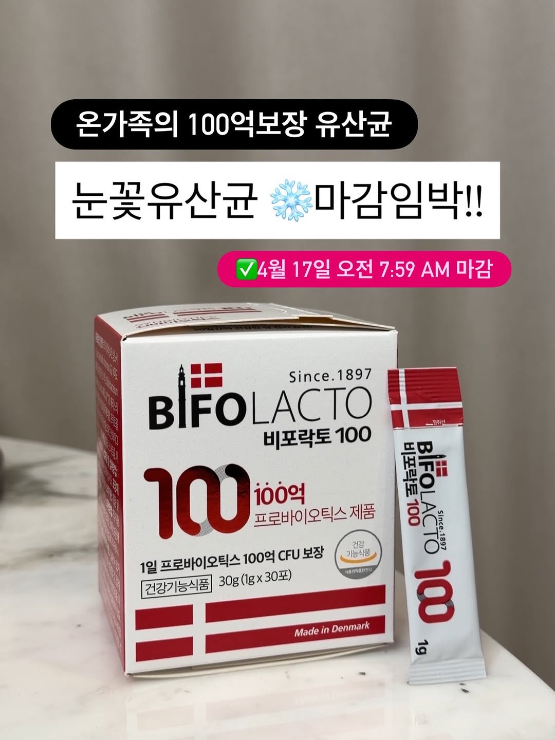 비포락토100 온가족의 눈꽃유산군 ❄️100억보장 유산균 마감임박 안내드려요! ✅다음공구는 7-8월 예정이며 🌸4월 17일 금요일 오전7시59분에 최저가 링크 마감됩니다!!!! #공동구매마감임박