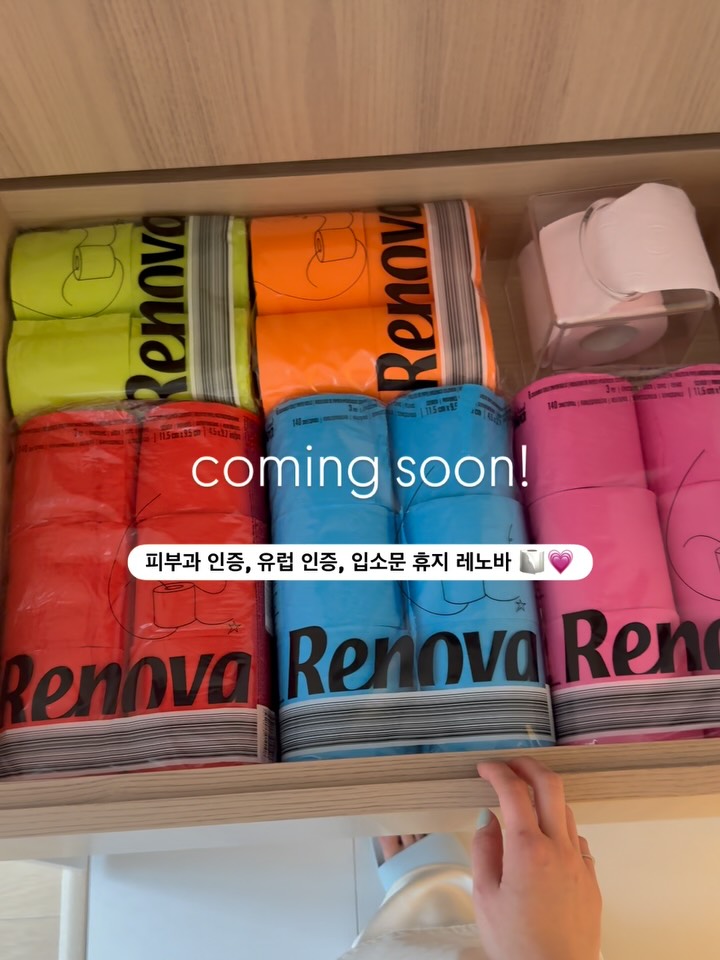 #오픈 #선착순이벤트 #단독공구 오전 10시 ⏰최저가 오픈합니다. 선착순 50분께는 아크릴 티슈 케이스 보내드릴게용 ⭐️ 드엘리사에서 큰 사랑을 받았던 유럽 프리미엄 티슈 레노바가 드디어 다시 돌아왔습니다!👏🏻 드엘리사 단독 진행입니다 💘 만개했던 벚꽃은 지고있지만 저는 레노바 핑크로션 티슈로 봄의 기분을 이어가고 있는데요🌸🌈 티슈 한 장 바꿨을 뿐인데, 집안 분위기가 달라졌어요✨ 무형광, 포름알데히드 등의 유해물질 무검출은 당연!👍🏻 유럽공인기관의 피부과 테스트 인증뿐 아니라 친환경 인증까지 받은 이쁘고 안전한 티슈로 네이버 리뷰가 무려 15,600개에 평점은 4.8점 이상!🔥 레노바는 일반 휴지보다 가격대가 있어서 365일 쓰기엔 좀 부담되실거에요! 그래서 저는 레노바를 뭔가 특별하고 싶을때, 기분 좋아지고 싶을때, 손님오실때 써요!😍 집들이 선물로도 최고고요!!👍🏻 공구에서 보기 힘든 브랜드인데 역대급 최저가로 가져왔으니 놓치지마세요!🚨📢 💗체크포인트💗 ✔️유럽 공인 IEC ESPAGNE 연구소에서 피부 저자극 테스트 완료👶🏻🙏🏻 ✔️피부 안전에 대한 국제 인증서 보유 ✔️형광물질, 포름알데히드 불검출! ✔️제품 전 과정이 환경친화적으로 생산 인증♻️ ✔️인증된 산림에서 생산된 목재를 증명하는 친환경 인증🌱 ✔️저가의 원지를 사용하지 않고 원지부터 100% 유럽 생산 ✔️원산지 : 포르투갈 ✅세트별 구성 1️⃣레노바 PINK LOTION 핑크 트윈 세트 → 스킨케어 핑크로션 12롤 2팩 2️⃣레노바 PINK 스프링 모먼트 세트 (한정수량) → 블랙라벨 컬러티슈 6롤 1팩 핑크 → 블랙라벨 컬러티슈 6롤 1팩 그린 → 블랙라벨 컬러티슈 6롤 1팩 오렌지 → 스킨케어 핑크로션 12롤 1팩 → 투명 아크릴 티슈 케이스 1개 3️⃣레노바 PINK 센슈얼 비비드 세트 (한정수량) → 블랙라벨 컬러티슈 6롤 1팩 핑크 → 블랙라벨 컬러티슈 6롤 1팩 블루 → 블랙라벨 컬러티슈 6롤 1팩 레드 → 스킨케어 핑크로션 12롤 1팩 → 투명 아크릴 티슈 케이스 1개 📌컬러티슈와 스킨케어 핑크로션은 입과 코에 사용은 가능하나 물에 닿으면 잘 분해되니 여러번 사용하지 마시고 한번 닦아내고 버리는 것을 권장드립니다. 📌티슈가 젖은 상태에서 직물과의 접촉은 피해주세요 📌색소는 아기들 치발기나 장난감에 들어가는 안전한 색소로 만들어졌습니다. 🚚전 상품 무료배송!✨ 🚚배송은 평일 기준 오전 11시 이전 주문 시 당일 출고이나 주문폭주, 택배사 사정등으로 다소 지연 될 수 있습니다