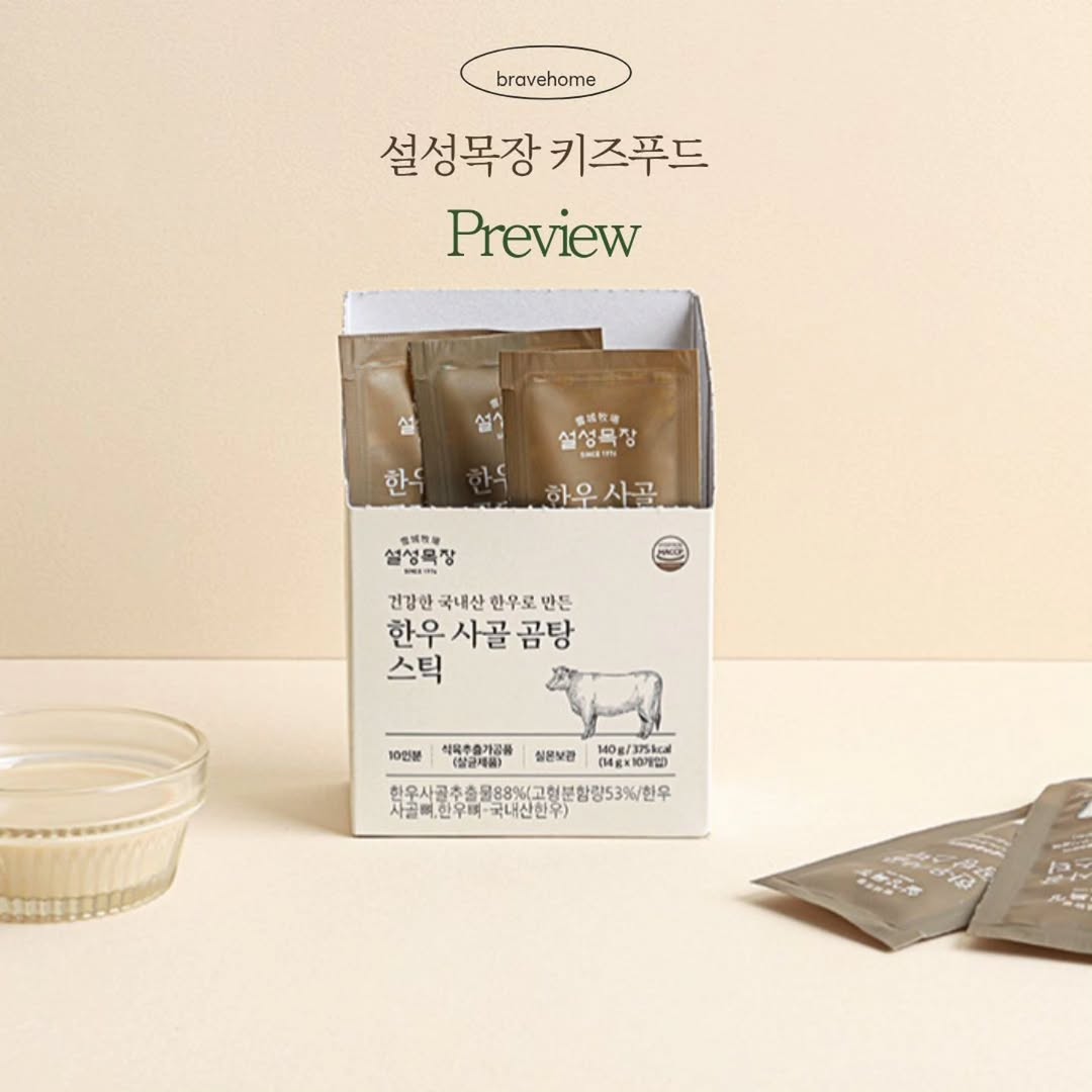 ❤️ 2차 공구 프리뷰✨️ 🏷️ 설성목장 어린이덮밥&어린이국&사골스틱 특가 오픈 예고 🎁 [구매 인증 EVENT] 한우사골곰탕 스틱(10ea) 2팩 쏩니다!🐂 구매 후 오픈 피드 or 예고 영상에 '구매완료 + 휴대폰 뒷 네자리' 댓글 남겨주시면 추첨을 통해 5분께 한우사골곰탕 스틱 2팩씩 보내드려요! (공구 종료 후 2주 이내 발송) - 2차 공구는 1차 공구와 구성에서의 차이점이 있어요! ✔️ 국의 종류의 개수를 늘리고 다 맛보실 수 있게 버라이어티 팩을 구성했어요! ✔️ 단품류를 뺐어요!! ✔️ 주변 엄마들 사이에서 입소문난 사골스틱 구매 가능‼️‼️ 옵션은 총 3가지 ❤️ 설성목장은 믿고 먹을 수 있는 식품이에요. 1차 공구에서 구입하신 분들이 만족도가 높았답니다.! 🔍 용감이네 x 설성목장 상품 구성 1. 소스 혼합 3종 세트 (100g 2팩씩 총 6팩) 닭가슴살 로제 토마토소스 100g X2 건강한 한우로 만든 불고기 덮밥소스 100g X2 한돈 등심 어린이 카레 100g X2 2. 국탕류 5종 버라이어티 세트(곰탕+닭곰탕+소고기무국+미역국+된장국) 구성(200g 1팩씩 총 5팩) 3. 한우 사골 곰탕 스틱(10ea) (140g 5팩) ✅️ 내일 오전 10시 오픈 입니다‼️‼️