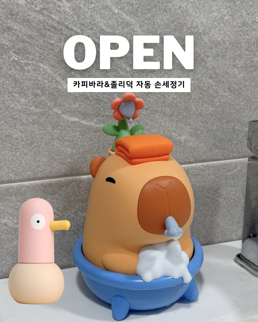 이거 하나 바꿨는데 손 씻는 분위기 자체가 달라졌어요!! 카피바라&졸리덕 자동 손세정기 오픈 🫧✨ 핸드워시는 펌핑해서 써야 하고 손 젖은 상태로 다시 눌러야 하고 한 손은 펌핑 한 손은 거품 받치고 이 과정 계속 반복되니까 은근 번거롭고 귀찮더라고요 😔 근데 이건 손만 대면 거품이 바로 나와요 🫧 그래서 귀찮는 과정이 아예 없어져요 ㅎㅎ 손 더러워도 그냥 가져다 대면 끝!! 외출 후 / 식사 전후 욕실 / 주방 / 설거지까지 흐름 안 끊기고 계속 쓰게 돼요 ✔ 자동 센서 거품 분사 → 터치 없이 바로 ✔ 방수 + 무선 사용 → 욕실에서도 부담 없이 ✔ 폼코인도 있지만 → 전용 제품 따로 안 써도 OK (핸드워시 / 주방세제 / 바디워시까지 집에 있는 세정제 다 사용 가능해요) 여기서 진짜 달라지는 건 아이 반응이에요 👀 손 씻으라고 말하기 전에 이미 가서 하고 있고요 “엄마 해줘”보다 혼자 해보려는 게 먼저 나와요 손 씻는 게 놀이처럼 바뀌더라고요 👍🏻 그리고 디자인도 한몫해요!! 🤎 카피바라 → 차분하고 귀여운 느낌 🩷 졸리덕 → 밝고 통통 튀는 느낌 기능은 똑같아서 고민할 필요 없이 취향대로 고르면 돼요 쓰면 바로 체감되는 거라 왜 다들 자동으로 바꾸는지 써보면 바로 느껴지실 거예요~ 이번에 한 마리 데려가셔도 좋아요 👀 📆 공구기간: -4/26 👉🏻 자세한 구성은 프로필 링크에서 확인해주세요 :)