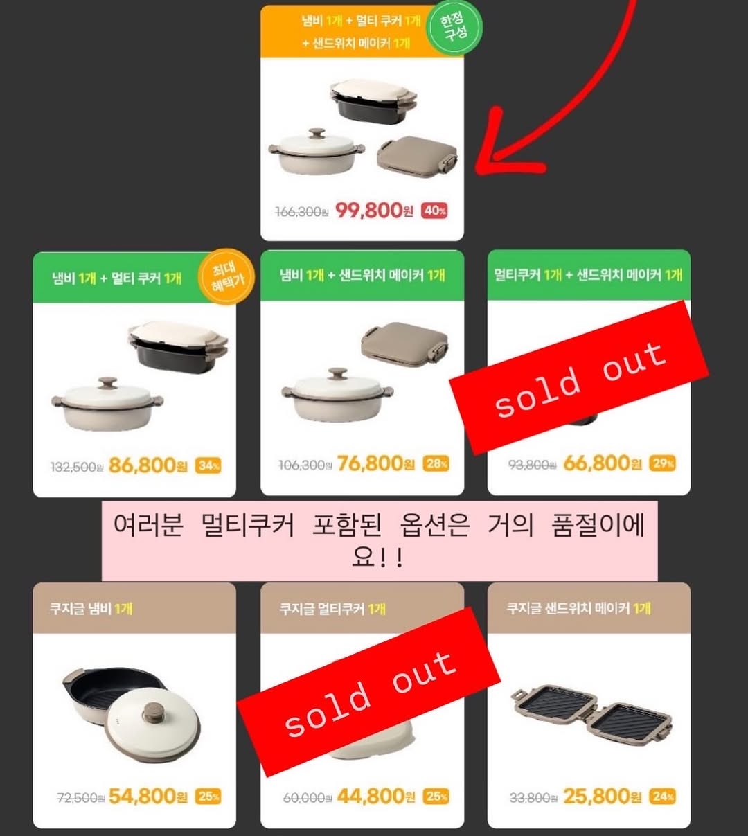 여러분❤️🔥 쿠지글 잘 받고 계신가요? 품절 된 옵션 알려드려요! 역시 생선쿠커🐟+에그쿠커🍳 함께 있는 멀티쿠커가 인기 가장 많아서 빨리 품절 되었어요😭 요거 진짜 주방 혁명템이죠..🥹 특히 더운 여름에 불 앞에 서있지 않아도 되는거 너무 좋구요💙 생선구이를 냄새 걱정 없이 먹고나서 기름 청소 할거 없이 구울 수 있다는것 만으로 이 전자레인지용 냼비는 제 할일을 톡톡히 해낸다고 봐요🐟🍳 저는 생선구이, 불고기 구울 때 정말 너무너무 편하더라고요! 설거지 다 했는데 야식 먹고 싶을 때 프라이팬 말고 쿠지글에 만두 올려서 돌리면 군만두 완성이고요❤️ 명란 올려서 돌리면 명란구이도 뚝딱 기름 많이 튀는 음식들은 쿠지글에 넣고 돌려주면 뒷정리 없으니까 너무 편해요! 준비한 수량은 몇십개 정도 남은 것 같아요! 이번 첫 공구 준비하면서 물량 최대로 받아 온거라 다음 일정은 2-3개월 후에 가능할 것 같아요 와디즈 펀딩보다 훨씬 할인율 높게 가장 최저가로‼️ 냄새 배임 없고❌ 기름 청소 없이❌ 편하게 요리할 수 있는 기회 품절 되기 전에 얼른 프로필링크로 오세요❤️