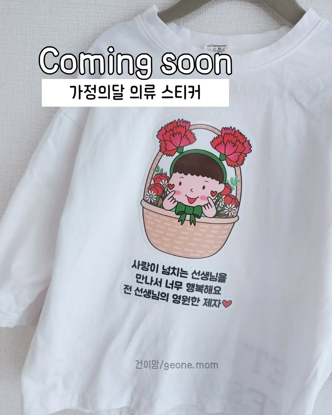 이제 이 스티커 없이 5월을 지나칠수 없죠‼️ 어버이날,스승의날 의류 스티커 4월22일 공구예고 다림질? NO! 보조필름? NO! 간편하게 붙여주기만 하면 끝, 참 쉽죠? 센스 넘치는 귀여운 의류스티커로 부모님께 선생님께 감동을 드리고 우리 아이 사랑 듬뿍 받는날 되자구요😎 🏷 22일(수)오픈 할께요 🏷알림 댓글 남겨주시면 오픈하자마자 제일 먼저 소식 전해드려요