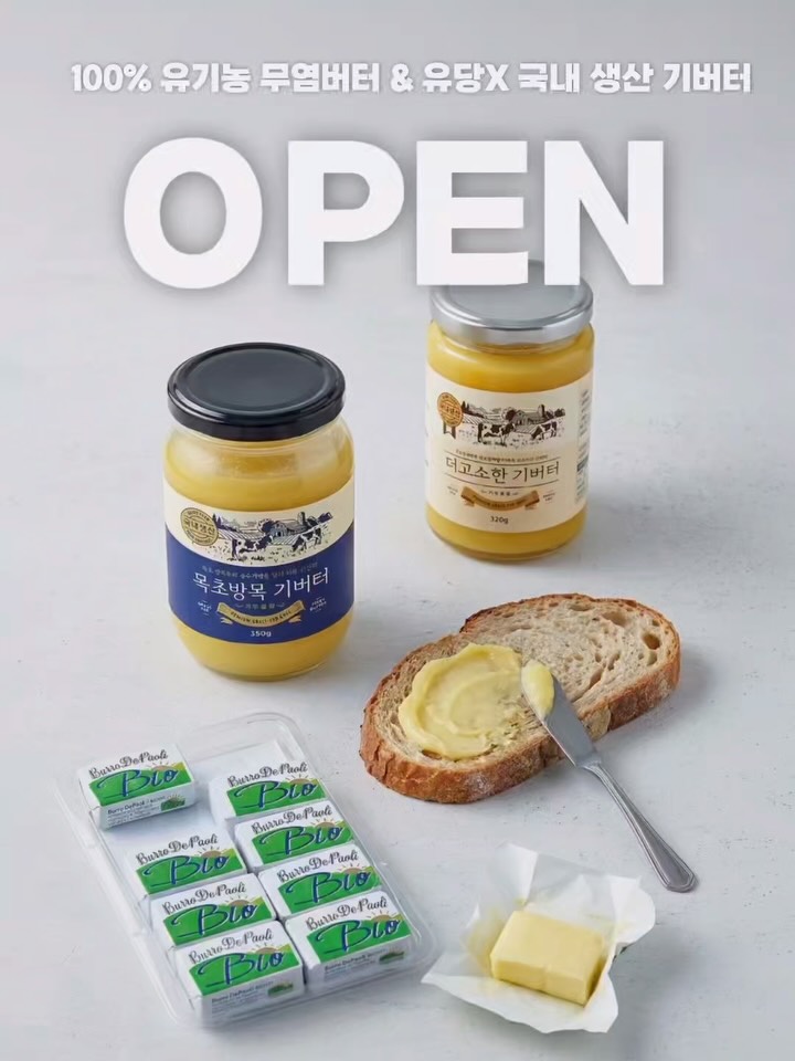 #공구오픈 댓글 이벤트❤️ 댓글 남겨주신 분들 5분께 원하는 제품 보내드릴께요! 유기농 포션버터 & 거두올림 기버터🧈 #공구혜택 구매완료 댓글 랜덤 10분! -> 커피쿠폰 증정!💕 마트에서 가짜 가공버터 구매하지 마시고 진짜 버터 구매하세요!! 국내유일 유기농 100% 무염 버터와 유당, 단백질, 카제인을 모두 제거한 기버터😉 ✅️ 파오리 유기농 무염버터 > 마케컬리에 10개 9,800원에 판매하는 버터! · 국내 유일 100% 유기농 원유로 만든 천연 버터에요! · 첨가물, 농약, 항생제, GMO 걱정 NO! · 우유의 고소함과 신선함을 담은 부드러운 맛! 아이스크림처럼 얼려먹어도 맛있어요 · 먹기 좋은 사이즈로 개별 포장되어 있어 소분할 필요가 없어요! 🧈 공구가 4세트 (40개) → 28,900원 8세트(80개) → 56,900원 배송비 4,000원 🧈 소비기한 : 2026.10.19 (냉동 보관 시, 6개월정도 추가 보관 가능!!) ✅️ 거두올림 기버터 - 국내생산! 목초방목 원유로 신선한 버터를 받아볼 수 있어요! - 유당, 카제인, 단백질을 제거한 순수 지방 99% - 유당불내증이 있어도 쉽게 섭취할 수 있어요! - 무항생제, 무합성첨가물이 들어가지 않은 유크림 100% 버터! 🧈 공구가 - 오리지널 1병 → 13,900원 / 5병 → 68,900원 - 더고소한 1병 → 15,400원 / 4병 → 60,900원 - 오리지널 2병 + 더고소한 2병 → 58,100원 (4병 이상 구매 시 무료배송) 🧈 소비기한 개봉전 - 18개월 / 개봉 후 상온 - 3개월 / 개봉 후 냉장 - 18개월 💁♀️ 버터와 기버터 뭐가 다른가요? - 버터 : 우유 지방을 굳혀서 만듦 / 지방순도 80% - 기버터 : 만들어진 버터를 약한 불에서 천천히 끓여 수분, 유단백질을 제거 / 지방순도 99% - 기버터가 버터보다 발연점이 높아서 요리할때 주로 사용할 수 있어요! 유당불내증 있으신 분들은 기버터 추천🥰 💁♀️ ”오리지널“기버터와 ”더고소한“기버터의 차이 - 더고소한 기버터에는 지방흡수를 도와주는 고올레산 해바라기 레시틴이 함유되어있어요! 기버터의 부족한 고소함을 채웁니다! 오리지널 대비 더 고소해서 아이들 밥 비벼줄 때나, 생식으로 드실때도 추천드려요! ✅️ 공구기간 4/7(화) ~ 4/10(금)