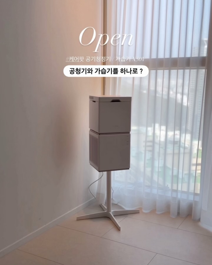 잠시후10시‼️ #최초공구 #가습기와공청기를 한번에 ! 필요한 가전은 많은데 둘 공간은 적고 지저분한 선들은 덤,,🥹 이 모든걸 해결해줄 #역대급 2 in 1 제품이 나왔어요 ! 그 유명한 케어팟에서 공청기가 새로 출시되었는데 뛰어난 #스펙은 기본이고 기존 가습기와 트랜스포머처럼 결합까지..? 🫢 공청기 + 가습기 결합시 가습기 효율이 더 높아지고 공간 차지 없이 습도와 공기 케어를 한 번에 해결 ! 무드등 기능에, 초저소음 설계로 밤중에도 조용해서 안방 / 애들방에 딱! 이고 ✔️2배 더 강력한 공기청정기능 (CADR 270㎥/h) ✔️HEPA13 필터로 3중 필터시스템 ✔️PM2.5 초미세먼지 센서 ✔️AI 자동청정모드 ✔️에너지 소비효율 1등급으로 연 1,300원 전기료까지 ! 결합가능한 X50v 가습기와 세트구매시 추가할인도 받아왔어요👀 #한정수량진행 🎁 추가이벤트 ! 공기청정기 구매자중 10분을 추첨해 랜덤으로 필터 1P가 증정됩니다 ♥️ *댓글 남겨주시지 않아도 자동으로 추첨되어용 ✦ 𝙊𝙥𝙩𝙞𝙤𝙣 ___________________________ / 공기청정기 단품(스탠드 포함) / 공청기 (스탠드 포함) + X50V : 세트할인 ⭐️ / X50V 가습기 / 스틸 스탠드[가습기 개별구매자용 / 색상 2종] ✦ 𝙄𝙣𝙛𝙤 _____________________________ • 본 제품의 결합 구조는 가습기와 공기 청정기를 타워형으로 결합하여 공간 활용과 가습 효율, 관리 편의성을 높이기 위한 목적으로 제작되었습니다. 보다 정확한 공기질 측정과 공기청정기의 필터 성능 보호를 위해 동시 사용은 권장하지 않습니다. 즉, 공기 청정기는 24시간 가동을 시켜 주시되, 가습기는 "필요 시"에 가동 시키는 것을 추천 드립니다. • 전용 어플: Tuya 어플 연동 후에 모든 기능 조작이 가능합니다. • 공기청정기는 기본적으로 스탠드가 포함되어 있는 세트 구성입니다. 미세먼지를 인식하는 센서가 본체 바닥면에 위치해있기 때문에 공기청정기 단품만 바닥에 설치를 하게되면 정확한 미세먼지 농도를 인식하기 어렵습니다. • 사용 면적은 34.5㎡로 약 10.5평 입니다. 침실 면적을 충분히 커버할 수 있는 제품입니다.