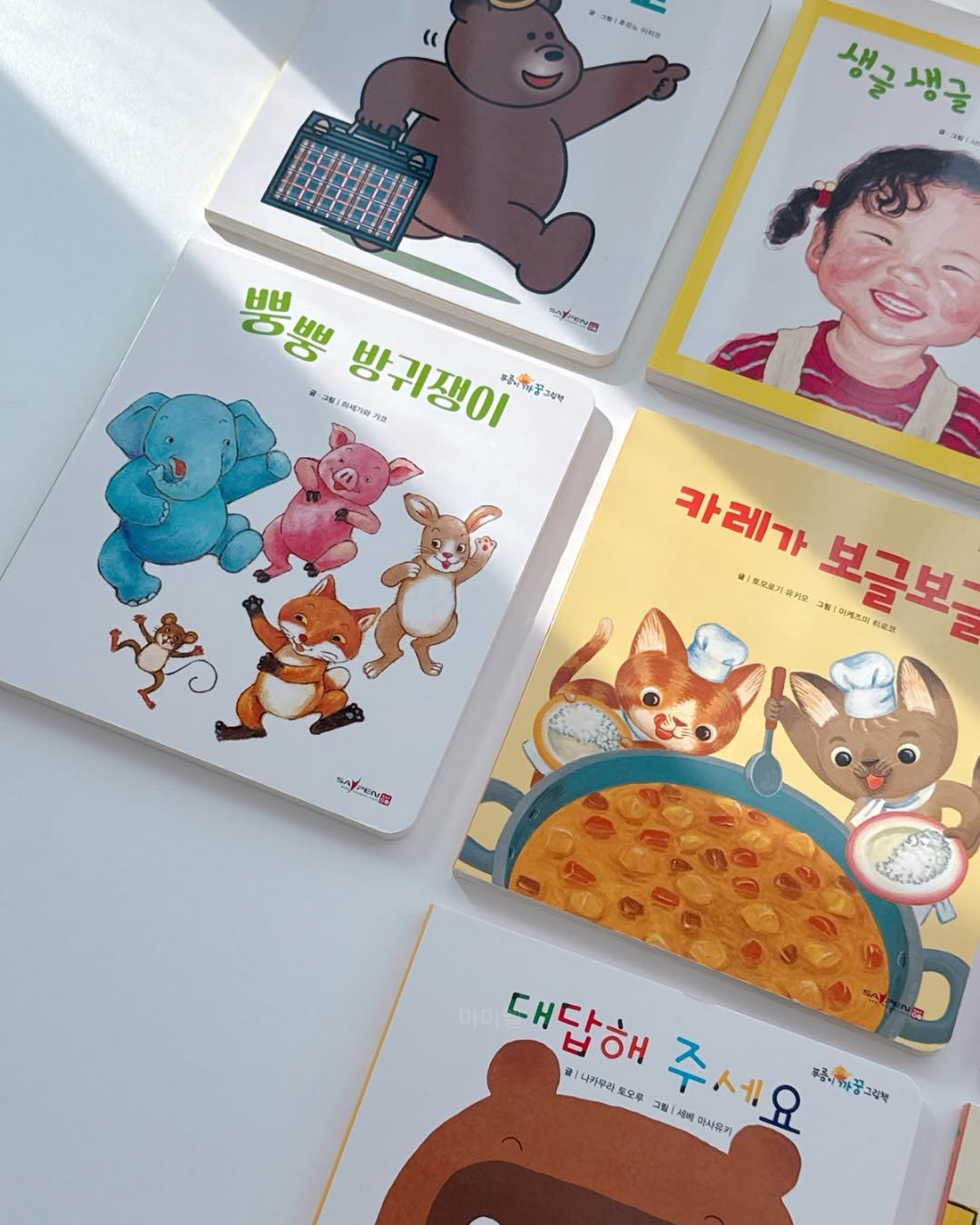 첫 창작전집으로 언어자극에 도움되는 의성어 의태어가 가득한 책입니다. 특히 8개월 전후 아기에게 추천합니다.