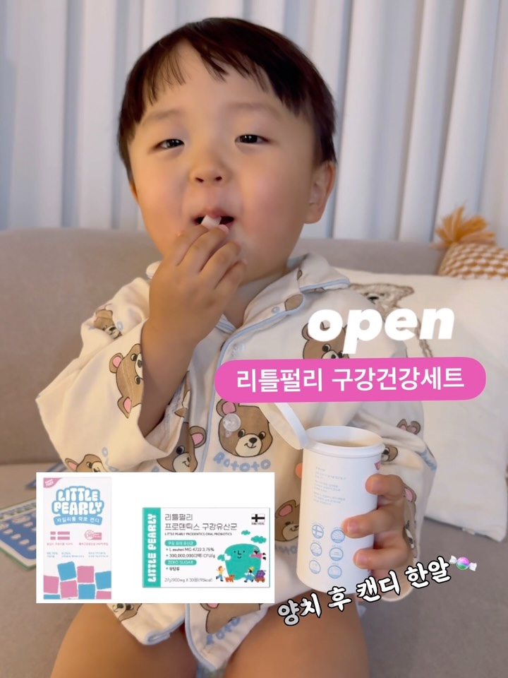 ꔚ공구오픈ꔚ 우리집 구강건강 지킴이💪 리틀펄리 구강유산균과 자일리톨캔디, 어린이치약🦷 리틀펄리 전제품 전~부 모아모아 최대 할인률로 진행되는 공구!! 📌댓글에 ’링크’ 남겨주시면 바로 보내드릴게요💌 💝선착순 선물💝 9만원 이상 구매자 중 선착순 50분께 👉리틀펄리 트래블파우치 증정! *동일한 주문번호 내 최종 결제 금액 기준 (배송비, 쿠폰 제외) 🎁오픈 첫날 한정 사은품 [구강유산균+자일리톨캔디 합구성] 구매자 랜덤 10분께 👉요구르트맛 자일리톨캔디 증정! 그리고 요 파우치형 ‘요구르트맛 자일리톨캔디’가 진짜 맛도리거든요😂 저도 맨날 자기 전 애들거 뺏어 먹는데- 요건 따로 공구로는 판매를 못해서 사은품으로 끼워왔어요💝 🎁요구르트맛 자일리톨 사은품 ✔️자일리톨 락토 캔디 -7개 옵션 구매시 👉요구르트맛 1팩 증정! ✔️구강유산균 -5개 옵션 구매시 👉요구르트맛 1팩 증정! -7개 옵션 구매시 👉요구르트맛 2팩 증정! ✅공구는 ~4/28(화) 자정 마감! 🚚오전 11시 주문건까지 당일 출고 (주문 폭주 시 익일 출고) 🎁구매완료 이벤트 구매 후 댓글에 ‘구매완료+폰뒷번호4자리’ 남겨주시면, 추첨을 통해 [1만원 신세계상품권] 선물드려요! - 아이들 영양제는 최소한으로 먹이는 제가, 구강유산균과 자일리톨캔디를 꼭 챙겨주는 이유는요🤌 저희 아이들은 둘 다 선천적으로 이가 좀 약하게 태어났어요🥲 치과 선생님이 그러시더라구요👩🏻⚕️ “이렇게 약하게 태어나는 애들은 똑같이 관리를 해줘도 남들보다 충치가 잘 생길 수 밖에 없어요! 더~ 열심히 관리해 주셔야해요!” 그래서 첫째 만 3세때 충치 치료에 충격 받고, 둘째는 더 열심히 관리했는데도 충치가 생긴거 있죠?😭 그러다보니 기본 양치질 이외에 추가 구강관리에 신경을 더 쓸 수 밖에 없더라구요🦷 실제로 칫솔로 닦을 수 있는 구강 면적은 단 25% 뿐이라고 해요‼️ 칫솔이 닿지 않는 75%에서 유해균이 빠르게 증식하기 때문에 양치질 만으로는 건강한 구강환경 유지가 어렵다는 사실💥 건강한 구강환경을 위해 구강 내 ‘유익균-유해균 균형’이 중요한데요- 구강내 유해균이 많아지면 입냄새부터, 충치, 잇몸 염증 등의 구강질환에 원인이 될 수 있어요👾 이때 유익균을 증식시키고 유해균은 억제하기 위해 ‘좋은 구강유산균’을 섭취하는게 도움이 됩니다👍 구강유산균도 아무거나 먹는다고 효과가 있는건 아니쥬? 아래 3가지 조건을 충족해야해요! ☝️락토바실러스 루테리 들어가고 ✌️보장균수 2억 CFU 이상에 🤟특허받은 기술이 필수!! 그래서 이 모든 조건을 충족하고, 부원료까지 하나하나 신경쓴 리틀펄리 구강유산균을 선택했어요🌟 유산균 전문기업 ‘메디오젠’의 프리미엄 균주를 사용해 보장균수 3억 CFU이상 함유! 락토바실러스 루테리를 포함한 구강특허 유산균을 가장 좋은 비율로 배합했어요! 여기에 국내산 100% ‘청숨식물혼합 7종‘을 넣어 기관지가 약한 아이들의 목 건강까지 신경썼습니다🍐 외부 산소/수분 노출에 민감한 유산균을 안전하게 보호하기 위한 Alu-Alu 특수 포장까지 완벽✨ 💟기존 유산균과 같이 먹어도 되나요? 물론입니다! 기존 장유산균과 구강유산균은 역할이 다르니 별개로 챙겨주세요! 💟자일리톨 캔디랑 역할이 어떻게 다른가요? 자일리톨은 충치균의 활동을 억제한다면, 구강유산균은 충치균 생성 자체를 억제해요❌ 두가지를 같이 드시면 더 효과가 좋아요😊 저희는 아침/낮에는 양치 후 자일리톨 캔디를 2알씩 주고 (하루 최대 4~6알) 자기전에는 구강유산균 1정 주고 있어요🤌 (하루 최대 1-3정) 섭취 tip🪄 자일리톨 캔디, 구강유산균 모두 최대한 구강에 오래 머무는게 핵심이라 천천히 녹여서 드세요😋 💟양치 후 에 먹어도 되나요? 네! 자일리톨/구강유산균 모두 당 0g 함유로 양치 후 섭취 가능합니다! 📌추가로 100% 핀란드산 자일리톨로 만든 [자일리톨 락토 캔디]와 맘가이드 A등급에, 국내 최다 안전 항목 인증 받은 [어린이 불소 치약]까지! 전제품 최저가로 담아가실 수 있어요!! #째째홈 #리틀펄리공구