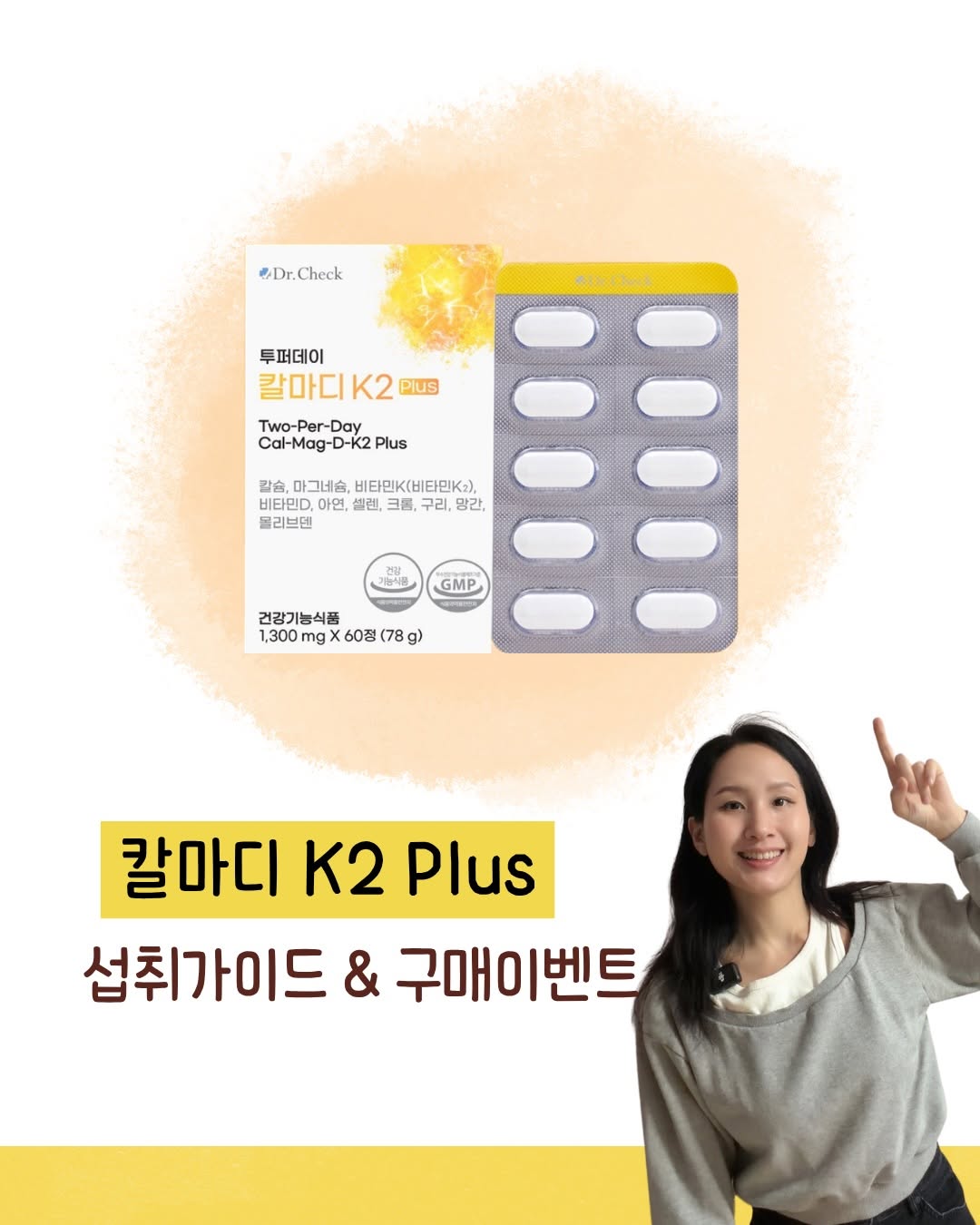 #구매이벤트 #오늘마감 단 2알로 칼슘, 마그네슘, 비타민D3, 비타민K2 (칼마디K2)+구리, 아연, 망간, 셀렌, 크롬, 몰리브덴까지 채울 수 있는 닥터체크 칼마디K2 플러스 오늘 마감합니다🙂 아무후기 남겨주시면 총10분 선정해 1박스 더 보내드릴게요! ✔️총10종의 비타민D+K2+미네랄 ✔️칼슘:마그네슘 비율=1:1로 매우 이상적 ✔️정말 강조드리는 비타민K2 원료 100ug ✔️QualiD 비타민D도 1,000IU 매우 잘 포뮬레이션 된 조합이니 뼈건강, 골다공증, 신경, 근육기능, 면역 등에 고민 있으셨던 분들 많은 도움 되시면 좋겠습니다