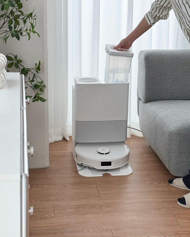 로봇청소기를 사용해보니 모서리까지 깨끗하게 청소되고, 먼지 비우고 걸레 빨기까지 자동으로 해줘서 청소 스트레스가 줄어들었습니다.
