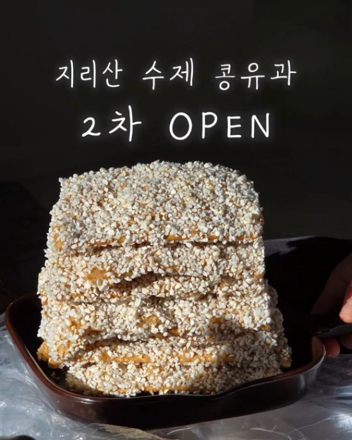 지리산 수제 콩유과 오픈 2차 축하드립니다🎉 2차 ‘콩유과’ 댓글 당첨자는 @ranyoung09 님!! 메시지로 성함 연락처 남겨주시면 추억의 맛 그대로 잘 보내드리겠습니다. 쌀이며 콩, 조청까지 직접 농사지은 원물로만 만들어요! 암암리에 소개로만 주문 받는 콩유과 전선생단독 2차 오픈되었습니다❤ 이번 2차 오픈이 마감되면 다음은 23일 금요일 밤 8시에 옵니다!! 콩유과에 대한 자세한 내용은 다음페이지로 넘겨주세요➡ 프로필 링크 안 보이시는 분들 댓글 남겨주시면 링크 보내드릴게요! 올해는 더 맛있다는 콩유과 꼭 드셔보세요☺ ──────────── 지리산 수제 콩유과 / 전선생 단독진행 ➡ 1박스 : 1.5kg ➡ 공구일정 : 1월 16일(금) 밤 8시~ ➡ 지정일 발송요청 불가합니다 🚫 ➡ 발주완료 후 취소는 불가하니 신중히 구매주세요! ──────────── 암암리에 소개로만 주문을 받는 콩유과집이에요. 지리산에서 어르신들이 쌀농사, 콩농사를 지어서 수확한 쌀과 콩으로 반죽하고 조청도 직접 졸여서 콩유과 제작까지 전부~~~~ 다 손수 진행합니다. 365일 판매하지 않고 딱 설날 전에만 만들어 판매하시는데~ 온라인에는 판매를 하신 적이 아예 없고 오직 전선생에게만 공구를 허락해주셨어요. (3년차네요 ㅎㅎ) 하루에 딱 50박스만 만들 수 있어서 제작 수량이 많지 않아요😭 직접 농사지은 원물만 사용하니 당연히 국산 100% 無방부제, 無첨가물, 수제 공정100% 수제다 보니 모양이 다 제각각이에요. 일반 유과와 다른점은~ ➡ 콩가루 함량이 높아요. 그래서 굉장히 부드러운 편이예요. 어린 아이들부터 임플란트 하신 어르신까지 모두 맛있게 드실 수 있는 질감이구요. 이에 달라붙지 않고 솜사탕처럼 사르륵 잘 녹고요. 수제 조청을 사용했기 때문에 달콤하고 고소한 맛입니다. ──────────── 📢 수제 콩유과는 조청의 함량이 높기때문에 온도에 따라 식감이 변해요! ✔ 시원하게 보관하면 딱딱, 바삭해지고 ✔ 따뜻하게 보관하면 녹진, 부드러워져요 ➡ 눅눅하고 기름진 느낌이 든다면 시원한곳에 두면 바삭해지고 ➡ 너무 딱딱하고 바삭한 느낌이 든다면 따뜻한곳에 두면 샤르륵 부드러워집니다! ──────────── 예쁜 선물포장은 힘들어요 😭 투박하게 한봉지에 차곡차곡 담아 보내드립니다. 나와 내가족들이 맛있게 드실 분들께만 추천드려요! 개인적인 입맛으로 인한 단순변심(반품)은 불가합니다. 배송일 지정 불가❌ (택배발송도 어르신들이 진행하기에 도중에 취소하거나 요청하시면 업무가 굉장히 마비 되어버립니다😭 넓은 이해 부탁드려요🙏) 참고 부탁드려요!! ──────────── * 소비기한 : 제조일로 부터 6개월 - 개봉 후 서늘한 실온 보관 - 오랜시간 보관시 냉동 보관 - 냉동보관시 먹기전에 미리 꺼내두면 먹기좋게 사르르 녹습니다! ──────────── #콩유과 #지리산콩유과 #수제유과 #수제한과 #지리산유과
