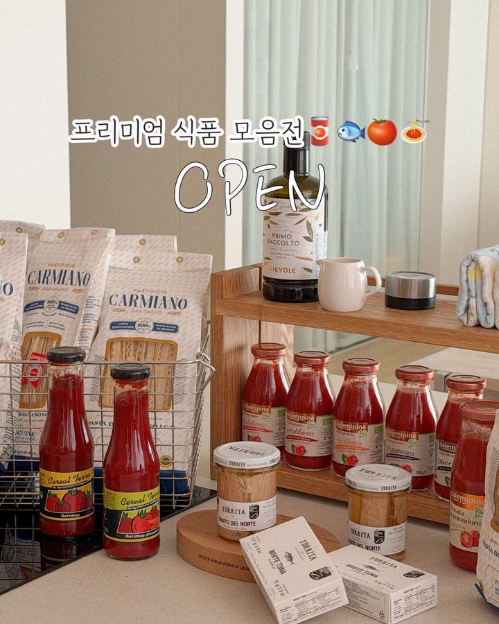 프리미엄 식품 모음전🍝🐟🫒🥫 #구매완료이벤트 여기에! 잠시후 10시 프로필 링크에서 오픈됩니다♥️ 💌구매 후 댓글로 ‘구매완료’ 남겨주세요! 추첨하여 10분께 💚필트 네트백 롱핸들 M사이즈💚 보내드릴게요 우리 딸은 엄마가 만들어 준 집밥 중에 뭐가 제일 맛있냐고 물으면 무조건 파스타! 라고 하거든요🤗 까르미아노, 살레미피나 먹어 본 후론 집에서 만든 파스타가 웬만한 맛집보다 훨씬 더 맛있어서 일주일에 꼭 한두번은 파스타 해먹어요 요리에 솜씨가 없으신 분들도 내가 만든게 맞나 싶게 맛있습니다🍅 이것 저것 참 많이도 먹어봤는데 파스타면이 파스타맛을 좌우할 수 있구나- 를 알게 해준 인생 파스타!!! 숏 파스타& 롱 파스타 굵기 모양 등 다양한 식감으로 즐겨보세요🍋 오늘 소개드리는 프리미엄 식재료들은 어느 하나 빠짐없이 제가 200% 추천드리는 제품들, 팬트리에 가득 채워두면 집밥 걱정 없어요 프리미엄 제품들을 좋은 가격에 만나보실 수 있는 서윤맘픽 그로서리 마켓 시작 합니다♥️♥️♥️ 🔵 𝐶𝑎𝑟𝑚𝑖𝑎𝑛𝑜 파스타면 좋은 품질의 파스타면은 겉면이 거칠어 소스가 면에 가득 머금어 파스타 맛이 업그레이드 되고 식감도 좋습니다:) 밀가루 냄새 전혀 없고, 이탈리아에서 재배되는 듀럼밀 사용 아주 옛날 거리에 파스타면이 세탁물처럼 곳곳에 널려있던 파스타의 고향! 나폴리의 그라냐노에서 500년 넘게 대대로 전통을 이어오며 생산되고 있는 까르미아노🍝 **그라냐노 IGP인증 🔵 𝑆𝑎𝑙𝑒𝑚𝑖𝑝𝑖𝑛𝑎 파스타 소스 이탈리아 남부 전통의 유기농 파스타 소스🥫 유기농으로 재배한 파끼노 방울토마토를 사용해 시칠리아 전통적인 레시피로 만들어져요 인공색을 첨가하지 않고도 붉은 색감에 미네랄 비타민C 리코펜 성분이 풍부 보존제, 설탕 등 첨가물 없이 순수한 자연의 재료로만! 심지어 파스타 소스의 중요한 원료의 기반이 되는 오일조차도 살레미피나 농장에서 생산된 올리브로 추출한 신선한 올리브오일 사용 토마토 뿐만 아니라 들어가는 모든 재료를 유기농으로 재배✔️ 🔵 𝐶𝑒𝑟𝑒𝑎𝑙 𝑡𝑒𝑟𝑟𝑎 유기농 케첩 케첩 좋아하는 분들이라면 누구나 알게 되는 시리얼테라🍅 정말 진-하고 새콤달콤 맛있어서 한번 맛보면 반하게 돼요 🔵 𝑌𝑢𝑟𝑟𝑖𝑡𝑎 참치 150년 전통 스페인 화이트 튜나 올리브오일 참치🐟 전통 어법인 낚시로 잡은 화이트 튜나를 장인의 손으로 수작업 가공하여 비린내 하나 없이 식감이 좋고 육즙이 부드러운게 특징! 🔵 디에볼레 26년도 햇 올리브오일🫒 ‘첫 수확’ 얼리 하베스트 엑스트라버진 올리브오일로 독특한 풍미를 지닌 디에볼레 리미티드! 올리브오일 즐겨드시는 분들은 이번 디에볼레 햇 오일 꼭 한번 드셔보세요 느끼함 전혀 없이 산뜻한 풋 토마토의 향으로 거부감 없이 드실 수 있고 토스카나 특유의 매콤한 향이 매력적이라 올레샷으로 추천드려요👍🏻 🏷️마켓 일정 ~ 4월5일 자정 마감 🚚주문일로 부터 익일 발송 주문폭주시 2-3일 정도 소요될 수 있음을 양해 부탁드립니다.