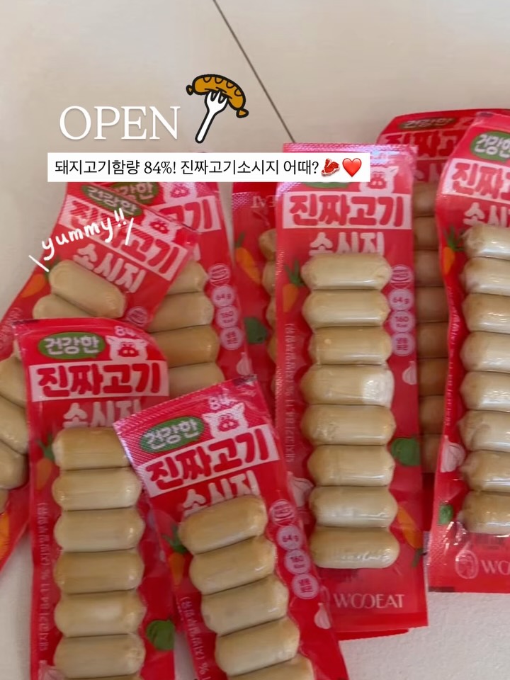 OPEN 진짜고기소시지🥩❤️ 오..오픈전부터 왜 오픈알림피드 안올리냐구 디엠주셨을만큼 요즘 유아식 밥상 인기만점 핫템!!! 드뎌 월요일 오픈옵니다🫶🏻 반찬한칸 그냥 채우기 각!❤️ 근데 아무반찬이나..? 놉! 성분좋고 맛좋은 이걸루요🫶🏻 ⭐️4/27(월) 오전10시 ~ 4/30(목) 단 4일간만 오픈! 런칭특가로 진행😎⭐️ 💌[아무댓글] 남겨주시면 특가링크 지금바로 디엠전송드릴게요🩷 가격&구성 미리 봐두세요~~~!! ✔️오픈은 월요일 오전10시! 스토리 알람 걸어두었어요🥳 ─────────── 🎁누구나 참여 가능한 이벤트 [하트❤️] 마구마구 남겨주세요 👉🏻진짜고기소시지 3팩 (3명) 보내드릴게요 맛있는건 같이 묵쟈 🎁구매완료 이벤트 구매완료🩷+휴대폰뒷자리 남겨주세요 👉🏻소시지 3팩 (2명) 👉🏻선착순 50명(10팩 이상 구매자) 소시지 1팩 추가 증정 👉🏻스벅쿠폰(8명) 보내드릴게요🥰🥰 🎁베스트리뷰어 (3명) 👉🏻네이버페이(페이백) 10,000P 지급 본사 직접 선정하여 주문자 네이버ID로 바로 지급! ─────────── ⭐️이제 좀 컸다구 햄, 소시지 찾는데 솔직히 대놓고 소시지 마구마구 사주기 좀 그렇더라구요ㅠㅠ 첨가물 범벅인걸 너무 잘 알고 있기 때문,,, ⭐️진짜고기소시지는 돼지고기함량이 대부분으로 진짜!! 고기!!! 소시지!!! 라는점 ㅎㅎㅋㅋ 더이상 할말이 없어요🦭🫰🏻 ⭐️그리고 애들꺼는 보통 슴슴하고 맛대가리(?)가 없는게 많은데 이건 저도 남편도 먹어보자마자 오?맛있는데? 꾸준히 먹는 제품입니다 ㅎㅎ ⭐️다른분들도 공구하시는데 저도 다먹고 다른데서 사먹을만큼 맛있숩니다!ㅋㅋ ✅한눈에보는 체크포인트 ✔️돼지고기함량 84% (100%국내산 무항생제 돼지고기) ✔️No! 아질산나트륨, 인산염, 보존료, 향료, L-글루타민산나트륨, 산화방지제🚫 ✔️으른이먹어두 맛있음 진심 ✔️가격도 착함 ✔️네이버 아기소시지 최상단 바로 그 제품😎 ✅보관방법: 냉동보관 🚚배송일정 롯데택배 / 낮 12시 이전 주문건까지 당일출고 ⏰소비기한 27.03.15(제조일로부터 12개월) 요 가격이 런칭특가 가격 마지막이라 다음부턴 개당 가격이 조금씩 오른다네요ㅠㅠ 이왕 먹는거 건강하게 맛난거 드세요🫰🏻💚💚 #유아식 #유아식반찬