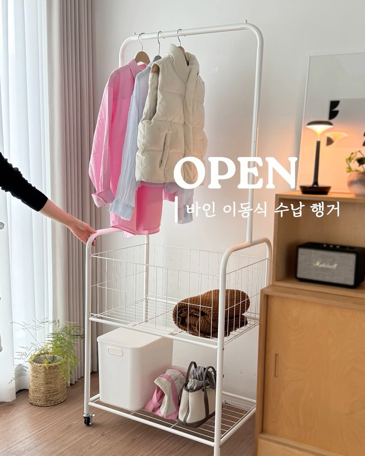 🧡바인 이동식 수납 행거 공구예고 감성 수납템 바인 이동식 수납 행거 공구 곧 오픈해요 😊 외출 후 옷 정리 한 번에 해결! 집에 들어오면 외투나 가방, 바로 옷장 넣기 애매할 때 많죠. 바인 이동식 수납 행거는 상단 행거 + 넓은 바구니 + 하단 수납칸 구성이라 외출 후 옷을 편하게 걸어두고 정리하기 좋아요 ✔ 외투·가방 걸어두는 상단 행거 ✔ 옷이나 소품 담기 좋은 넓은 바구니 ✔ 추가 수납 가능한 하단 수납칸 또 이동식 구조라 안방, 옷방, 현관 어디든지 필요한 공간으로 쉽게 이동 가능 👍 깔끔한 쇠테리어 감성 디자인이라 인테리어 분위기도 해치지 않는 수납템이에요 ✨ 옷 정리 편하게 하고 싶다면 바인 이동식 수납 행거 눈여겨보셔도 좋을 것 같아요. 곧 라라홈 공구로 소개해드릴게요! 🕒 3월12일-재고 소진시 마감 🙋빠른 구매를 원하시면 흔적 남겨주세요 좋아요❤️로 알림 드릴게요:)