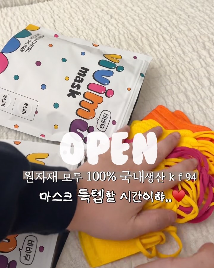 ‼️댓글에[링크]달아주신 팔로워분중 뽑아 “네이버페이 1만원권” 쇼핑지원금 선물드릴께요~♥️ -> 구매가능한 최저가링크 바로 보내드려요📩📩 이번에 희유 돌치레하면서 소아과 갔는데 .. 🥹 와 독감 진짜 난리더라구요. 근데 저희 희유는 마스크가 없어서 전전긍긍..🥲 이제 마트 장보거나 잠깐 외출시에도 마스크 해줘야 겠다 하는데.. 와.. 이거 처음 쓰는 마스크인데 아무거나 그냥 씌울 수가 없는거예요 ㅠㅠㅠㅠㅠ 첫째 5살때부터 5년동안 써온 스누피마스크 대표님께 바로 연락해서 완전 좋은 공구가로 좋은제품 소개해드릴 수 있게 되었어요~~🥹♥️ 기존 스누피 마스크도 오래써도 불편함 없고, 국내생산에 만족도가 너무 높아서 저뿐만 아닌 함께 공구해주신 분들 모두 만족해 주셨었는데 이번 신상 비비무 비비드 라인 마스크는 가격은 라이센스비를 줄여 더 착해지고! 더 세심한 좋은 원료 사용으로 더 업그레이드~~♥️ 얼굴 크기, 라인 크게 상관없이 편하게 착용할 수 있도록 정말 잘 만드신거 같아요👍🏻 진짜 자신있게 추천을 드려볼께요🥹 컬러도 9가지로 배색도 너무 이쁜데 화이트/베이비핑크/아이스블루/옐로우/오렌지/ 퍼플/핑크/블루/다크그린 와 진짜 이거 선택장애 온다니까용..🥹 사이즈는 키즈/주니어 두가지로 키즈는 3세-5세 주니어 5세-9세 ‼️소형이 신상추가 되었어요 10~13세 이지만 돌쟁이 희유는 (70cm 7kg 얼굴 작은편) 키즈를 귀밴드 한바퀴 귀돌려 잘 사용하고 있고! 초3 희로는 (144cm 40kg 얼굴 마니 큰편🤣) 주니어를 딱 맞게 핏되게 잘 사용하고 소형을 여유롭게 보기좋게 사용하고 있어요!! 약간 귀밴드가 다른 마스크들에 비해 너무 잘 늘어나고 마스크 코밴드 진짜 편하고, 마스크 라인이 좋아 왠만한 사이즈 잘 핏되며 커버하는 느낌이랄까🤔 이부분 너~ 무 마음에 들었어요! ✔️아이들 얼굴라인에 맞춘 인체공학적 디자인 ✔️호흡에 특화된 3중 압착 필터 ✔️100% 국내산 코편으로 편안한 착용 ✔️귀가 편안한 납작 탭밴드 ✔️프리미엄 스펀본드 원단으로 부드럽고 자극 최소화 ✔️오코텍스 국제인증 ✔️피부 저자극 테스트 완료 ✔️KC안전인증 테스트 모두 통과 ✔️독일 더마테스트 엑설런트등급 프리미엄 원단사용으로 ‼️장시간 착용에도 보풀 최소화, 가려움 zero!!! ✔️냄새가 나지 않는 마스크로 후기 가득 ✔️아이들이 좋아하고 잘쓰는 마스크! ✔️최상급 멜트브로운 필터사용으로 확실한 유해물질차단 ✔️95% 분진포집효율 ✔️강렬한 자외선 UV차단 99% 우리 아이 입에 피부에 직접 장시간 쓰는 호흡기도 관련된 마스크인데, 믿고 사용가능한 모든 부자재 국내생산 100% 비비무 마스크로 씌워주시는걸 추천드릴께요오~~♥️♥️ ‼️한정수량으로 진행되어 원하시는 컬러/사이즈가 빠른 품절이 일어날 수 있으니 알림 받아보시고 오픈런 하시기 바랍니다앙🙏🏻