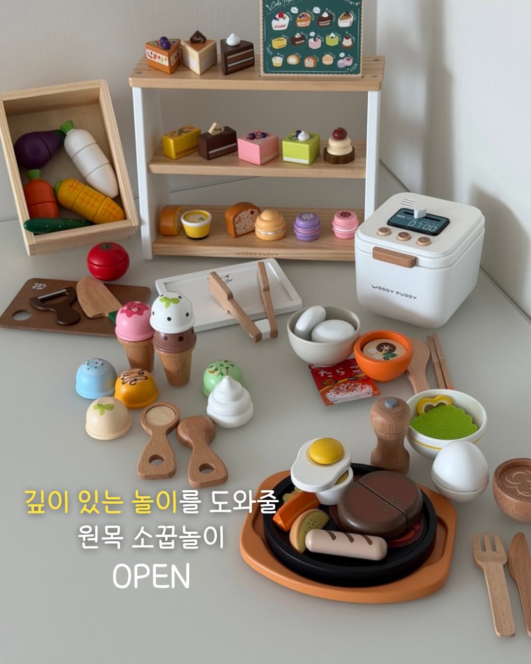 [핫딜오픈/2차] 놀잇감, 언제 처분하세요? 📌잠시 후 10시 오픈 저는 아이 발달에 맞지 않을 때를 기준으로 삼아요. 지금까지 수도 없이 사고 처분하다 보니 자연스럽게 보이더라구요! 짧게 쓰고 마는 것 vs 오~래 곁에 두는 것 ➖ 그중 소꿉놀이는 단연 오래가는 쪽이었어요. 발달 구간도 길고, 얼마나 디테일한지에 따라 아이가 빠져드는 깊이가 완전히 달랐거든요. 근데 플라스틱 제품들은 입에 대도 괜찮을지, 씻기엔 어떻게 해야 하는지 늘 마음 한켠에 걸렸어요. ➖ 그 고민을 해결해준 게 원목 소꿉놀이였어요. 보육교사로 교구 많이 써보고 유나랑 이것 저것 정말 많이 사용했는데 집에서 1년 가까이 쓰고 나서도 ”이거 진짜 잘 샀다“ 생각이 드는 건 흔치 않거든요. 원목 특유의 무게감, 질감 아이가 쥐었을 때 느껴지는 그 차이가 플라스틱이랑 달라요🔥 진짜루💛 ⋆˙∘˚☆˚∘˙⋆⋆˙∘˚☆˚∘˙⋆ 📌원목 소꿉놀이 5구성 🍚 밥솥 set 🥗 샐러드 set (각인 추가 가능 / 2~3일 소요) 🥩 치즈함박 스테이크 set 🍦 요거트팝핑 아이스 set 🥐 베이커리 set ⋆˙∘˚☆˚∘˙⋆⋆˙∘˚☆˚∘˙⋆ 🚚 무료배송 ⏰ 평일 오전 10시 이전 주문 시 당일출고 🕒 공구 일정: 4/9(목) 오전 6시까지 @u._.na___ 프로필 링크에서 확인 가능해요💚