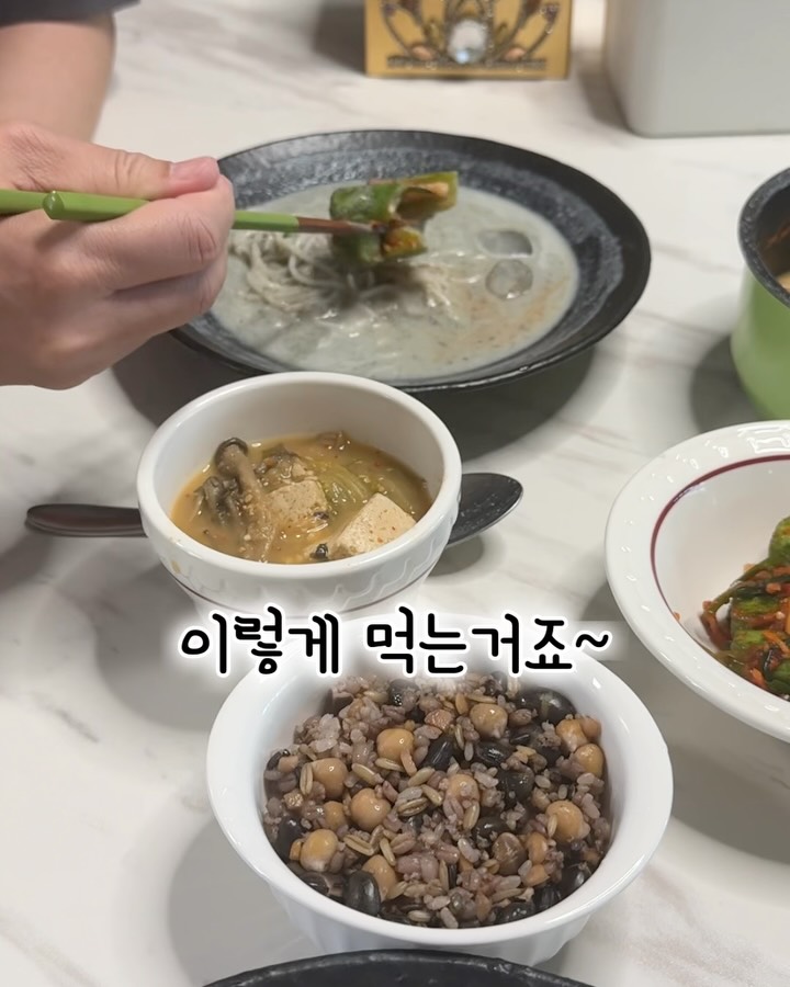 ❤️요즘은 먹는거, 또 어디 간 것들... 모두 사진으로 찍으면 왠지 더 어색하고~?! 또 음식 사진은 더 추레하고~ㅋㅋ 그래서 영상으로 찍고 바로바로 짧게 편집해요.^^ 매번 색다른 까페에서 공부 하는 것을 좋아하는 짝꿍이 오늘은 포스코 건물에 있는 테라로사에 가자고 하더라고요. 아침 일찍 간단하게 챙겨 먹고, 테라로사에 가서 커피랑 또 빵 먹었더니... 하루종일 속이 겔릉겔릉~ㅎㅎ 집에 와서 점심 겸 저녁으로~ 콩국수에 오이김치 올려 먹고, 방명희 얼갈이 된장국 남은 것에 밥 말아 먹으니까~ 세상 완전~ 역시 한국사람은 된장국물에 김치랑 먹어야 속이 겔릉하지? 않아요.ㅋㅋ 역시 된장국물에 김치가 최고. ㅋㅋ 그제서야 속이 뜨지 않고, 개운한 것이 둘이 코 박고 먹었네요 ~ 오늘도 뒷모습 서로 찍어주면서~ 또 손 잡고 봄 산책도 하면서 감사하게 보낸 하루!! 이렇게 주말에 짝꿍이 오면... 뭐, 집에 있는 그대로~~ 그렇게 먹고 지내요. 이렇게 먹고 사는거죠. ㅋㅋ *^^*😁 📌참참 주구장창 먹어도 맛있는 방명희 얼갈이 우거지 된장국~ 오늘까지 입니다! 내일 아침 뿅 사라져요!! 언넝 구매하세요! 예약 구매로 다음주 목요일 일괄 배송 됩디다.*^^*