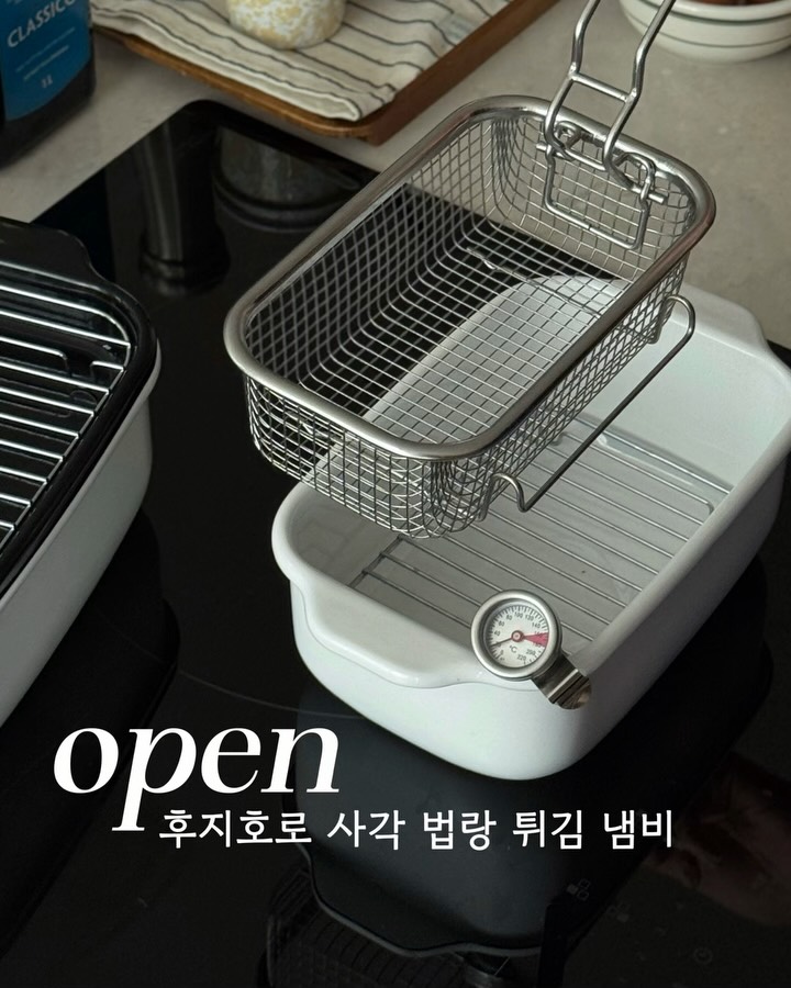 🤍후지호로 사각 법랑 튀김냄비 공구예고 집에서도 일식집처럼 바삭한 튀김을 즐기고 싶지만 너무 많은 기름 양과 번거로운 뒷정리 때문에 포기하셨던 분들 많으시죠✨ 깊이감 있는 사각 구조로 기름 소모는 줄이고 조리 효율은 높인 후지호로 법랑 튀김냄비 공구 준비했어요 이 제품은 열전도와 보존력이 뛰어난 법랑 소재를 사용하여 적은 기름으로도 식재료 속까지 균일하게 익혀주는 아주 똑똑한 조리 도구예요 특히 전용 튀김망이 포함된 구성이라 튀긴 후 한 번에 건져내기 정말 편하고 사각 형태라 긴 새우튀김이나 돈가스를 튀길 때도 공간 낭비 없이 쏙 들어가요 튀김뿐만 아니라 오븐 사용까지 가능한 멀티 냄비로 원팬 파스타나 볶음 요리 등 활용도가 무궁무진해요 후지호로 냄비, 홈앤홈에서 내일 만나보세요~ 🕒공구기간 4월12일-재고 소진시 마감 🙋♀️빠른구매 원하시면 흔적 남겨주세요 좋아요❤️로 알림 드릴게요 :)