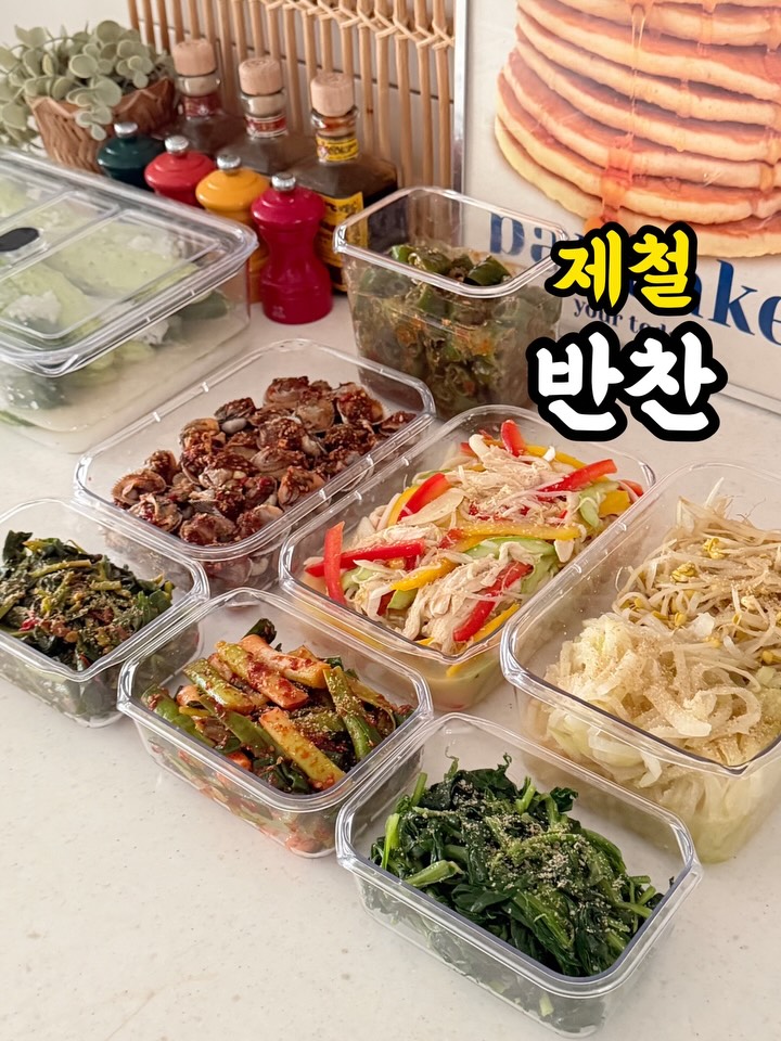 🌸봄이 좋아! 제철 반찬 +a ➡️➡️➡️ 옆으로 넘기시면 영상 계속 연결돼요! ✨영상 속 투명 반찬통은 프리피라 브루클린! 날개없이 완벽한 밀폐력의 트라이탄 밀페용기 최저가 공구중! 🔥카쇼페와 역대급 혜택으로 판매중이니 놓치지 마세요! 👉🏻프로필 링크로 오세요! 요즘 봄나물이 한창 제철이죠! 그리고 알은 잘아도 살이 꽉 통통하게 들어찬 꼬막!! 제가 봄나물을 너무 좋아해서, 어제 취나물, 방풍나물, 풋마늘 잔뜩 무치고.. 아이들은 입도 안대니깤ㅋㅋㅋ 따로 아직은 달큰하고 맛있는 무+콩나물 어릴 때 친정엄마가 해주시던 방식으로 만들어 봤어요! 뭔가 본격적인 봄이 되면 반찬들도 가벼워지는 느낌이랄까요? ㅎㅎ 오이고추도 무쳐내고, 오이가격이 많이 착해졌길래 오이지도 한통 만들어두고! 그리고 내 몸도 좀 가볍게 만들려고 ㅋㅋㅋ 지난번 @inhye0921 님 릴스에서 봤던 수비드 닭가슴살 삶는법으로 촉촉하게 가슴살 삶아내 채소랑 같이 겨자소스에 무쳐봤네요! 삼식씨도 좋아하는 다욧메뉴..흣! 설렁설렁 만들다보니 3시간 훌쩍~ 다 만들고 나니 또 뿌듯~했던 ㅎㅎ 어제 반찬 레시피 간단하게 공유해볼게요! 1.콩나물+무나물 냄비에 씻은 콩나물, 채썬 무나물 담고 참기름, 백간장 조금, 소금, 가루육수, 물 200ml 뚜껑덮고 끓기 시작하면 5분뒤 뚜껑열어 뒤집어주세요. 다시 뚜껑덮고 무가 완전 익을때까지 익혀주면 끝! 각각 볶은거랑은 맛이 좀 달라요! 전 어릴 때 친정엄마가 항상 요렇게 해주신☺️ 2.취나물 줄기끝단 질긴 부분만 손질하고, 끓는 물에 소금 넣고 데쳐요. (줄기가 말캉해질때까지 1~2분) 물기 꼭 짜고 백간장1,소금,참기름,깨 저는 봄나물 무칠땐 다진마늘 안넣어요. 나물 자체의 향을 만끽하세요!! 3.방풍나물 취나물과 똑같이 손질 후 데치고, 된장1 고추장0.5 매실1 참기름 깨 방풍향이 강해서 된장+고추장조합에 무치는거 좋아해요. 그냥 취나물이랑 비슷하게 양념하셔도 됩니다! 4.풋마늘무침 풋마늘 뿌리 잘라내고 한겹 벗겨줘요. 잎끝 누런부분 떼어내고~ 깨끗이 씻은 뒤 먹기좋게 자르고 이번엔 데쳐서 액젓에 무쳐봤는데요! (액젓 고춧가루 매실 깨) 저는 개인적으로 생 풋마늘을 소금에 절여뒀다가 깨끗이 헹궈 물기를 짜고 고추장 고춧가루 매실 물엿 깨 요렇게 무치는게 더 맛있더라구요. 5.양념꼬막 해감한 꼬막 깨끗이 여러번 씻어 끓는 물에 넣고 휘휘 저어가며 꼬막이 입을 벌리기 시작하면 건져요. 먹기좋게 껍질 한쪽 떼어내고 양념간장(간장 고춧가루 마늘 대파 알룰로스 쬐끔 참기름 깨) 고루 뿌려주면 끝 6.오이고추 된장무침 짜지않은 시판된장에 매실, 물엿, 다진마늘 조금 넣고 고루 섞어서 고추넣고 무쳐주면 끝! 7.닭가슴살냉채 끓는물에 월계수잎,통후추,맛술,소금 넣고 (@yun_mom85 님네 용융소금 넣었어요!) 여기에 닭가슴살 넣고 불끄고 뚜껑덮고 25분! 속까지 아주 촉촉하게 잘 익어요!! 레시피 알려주신 @inhye0921 님 감사합니돠!! 닭가슴살 쪽쪽 찢고 파프리카,양파,오이,데친 숙주 겨자소스(시판제품 사용) 넣고 무치면 끝 8.오이지만들기 오이 10개 기준으로, 꼭지 자르고 물기 닦은 뒤 밀폐용기에 넣고 소금300 설탕300 식초180 고루 뿌리면 끝. 하루 지나면 물 나와요 뒤집어주고 노랗게 삭으면(7일 뒤) 건져내서 짠기 빼고 무쳐먹음 돼요! 11년째 정착한 레시피인데 골마지 안생깁니다!! 오이지의 계절이 오네요!!🥒 #반찬만들기 #반찬레시피 #밑반찬 #반찬 #봄나물