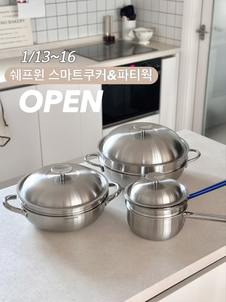 ⠀공구오픈‼️#쉐프윈 #이벤트 쉐프윈 베스트셀러 올인원 스마트쿠커&파티웍 오픈했습니다🙌🏻 신혼초부터 10년째 사용중인 쉐프윈! 냄비, 찜기, 채반 모두 포함된 구성이라 이 냄비 하나면 찌고 데치고 끓이고 헹구고 다 할 수 있어 요리가 편해지는건 물론 다양한 요리가 한큐에 가능하니 조리시간도 확 절약돼요 이유식 냄비로도 유명한 만큼 평생 만능냄비로 매일 손이가는 냄비! 한번 들이시면 정말 유용하게 사용하실거에요☺️ ⠀⠀⠀⠀⠀⠀⠀⠀⠀⠀⠀⠀⠀⠀⠀⠀ 웍으로 각종 찌개, 전골요리, 탕, 찜 하면서 스티머 함께 올려 찜요리까지 한번에! 활용도 정말 좋은 파티웍까지✨ 평생 쓸 냄비 찾으시는 분들 어서오세요🤍 ⠀⠀⠀⠀⠀⠀⠀⠀⠀⠀⠀⠀⠀⠀⠀⠀ 💌쉐프윈 써보고싶으신 분들! 댓글에 기대평, 쉐프윈, ❤️ 등 아무말 남겨주세요 추첨을 통해 1분께 “올인원 스마트쿠커”를, 3분께 “네이버페이 1만원권” 선물로 보내드릴게요 ⠀⠀⠀⠀⠀⠀⠀⠀⠀⠀⠀⠀⠀⠀⠀⠀ 💌구매이벤트 구입 후 구매완료+핸드폰 뒷 4자리 남겨주세요 추첨을 통해 4분께 “네이버페이 1만원권” 선물로 보내드릴게요 ⠀⠀⠀⠀⠀⠀⠀⠀⠀⠀⠀⠀⠀⠀⠀⠀ ⠀⠀⠀⠀⠀⠀⠀⠀⠀⠀⠀⠀⠀⠀⠀⠀ 🟡올인원 스마트쿠커(18cm 편수냄비+찜기+채반+뚜껑) ▫️304 스테인리스 ▫️냄비+찜기+타공채반+손잡이+뚜껑 총 5종 구성 ▫️바디전체 통 5중 구조로 높은 열전도율&열보존율 ▫️돔형 뚜껑은 뒤집어 받침대, 그릇으로 활용 가능 ▫️모든 열원 사용가능 ⠀⠀⠀⠀⠀⠀⠀⠀⠀⠀⠀⠀⠀⠀⠀⠀ 🟡파티웍(28/32사이즈) ▫️최고급 소재 316 스테인리스 ▫️웍+스티머+뚜껑 구성 ▫️바디전체 통 5중 구조로 높은 열전도율&열보존율 ▫️이음새가 없는 스팟용접방식으로 이물질이 끼지않아 위생적 ▫️모든 열원 사용가능 ▫️돔형 뚜껑은 뒤집어 받침대로 활용 가능 ⠀⠀⠀⠀⠀⠀⠀⠀⠀⠀⠀⠀⠀⠀⠀⠀ 🔸공구기간: 1/13(화) ~ 16(금) 🔸배송: 오전 10시이전 주문건 당일출고 ⠀⠀⠀⠀⠀⠀⠀⠀⠀⠀⠀⠀⠀⠀⠀⠀ ⠀⠀⠀⠀⠀⠀⠀⠀⠀⠀⠀⠀⠀⠀⠀⠀ . . #올인원스마트쿠커 #파티웍 #쉐프윈공구
