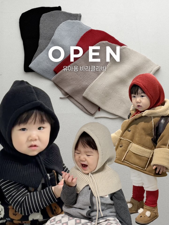 부드러운 니트소재의 바라클라바로, 머리부터 귀, 목까지 따뜻하게 감싸줍니다. 5살과 2살 아이들이 함께 사용할 수 있으며, 6가지 컬러로 제공됩니다.