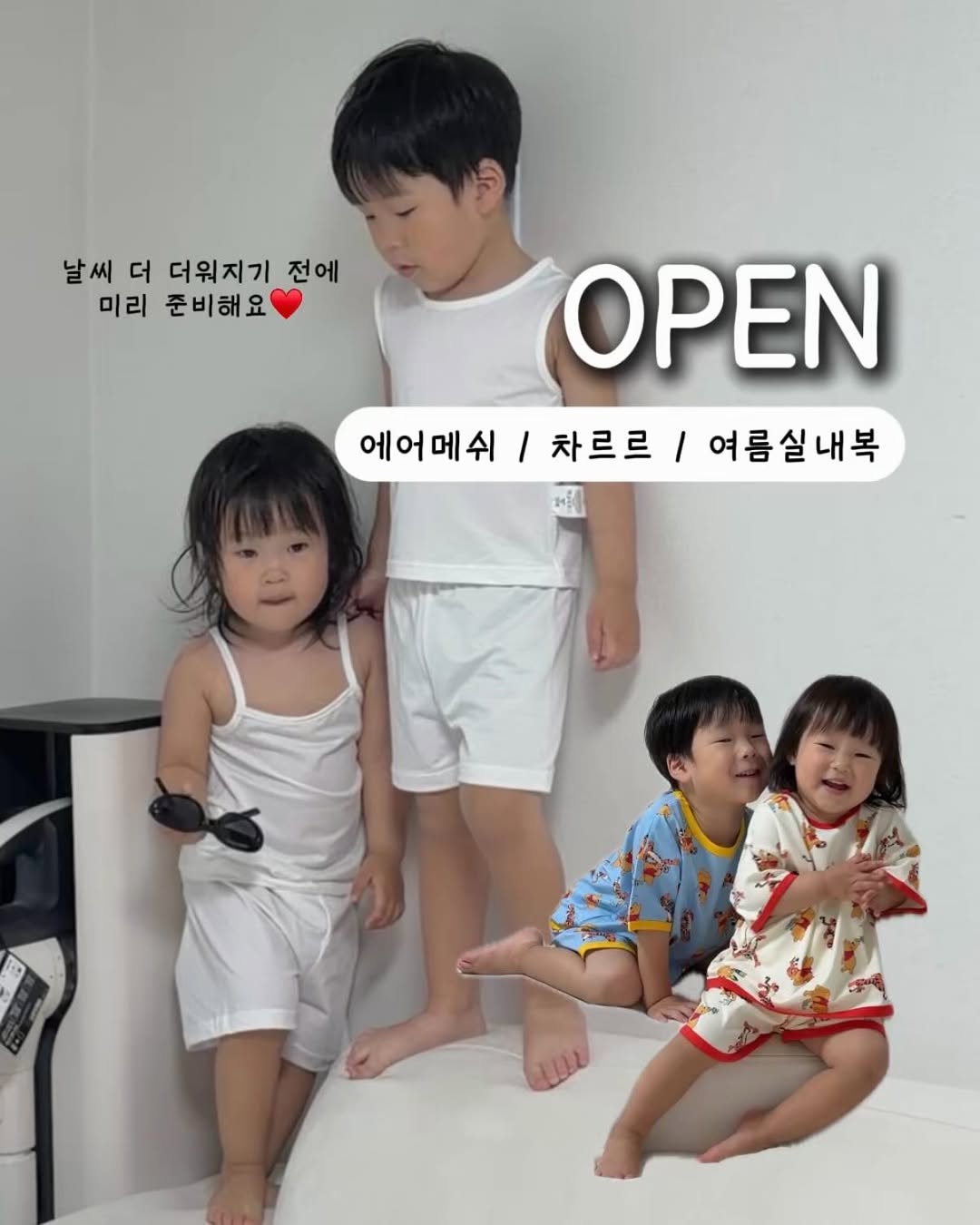 #공구오픈 [링크]남겨주시면 최저가링크 보내드려요! 🎁구매완료이벤트🎁 구매 후 댓글에 [구매완료]를 남겨주시면 추첨을 통해 2분께 [커피쿠폰]을 선물로 보내드릴게요! (또후니맘 태그 후 스토리, 피드 인증시 당첨확률 UPUP) ——————————————— 날씨가 갑자기 훅! 더워져서 우리아이들 땀 삐질삐질 반팔을 입혀야하나 싶을정도로 덥더라구요..! 더위 많이 타는 아이들에게 필수템인 [에어메쉬] 슬슬 필요하실것 같아 준비해왔어요♥️ 휘뚜루마뚜루 입히기 좋은 [나시,속바지]부터 코튼모달원단을 사용한 [여름 실내복]도 함께 준비했으니 꼭꼭 살펴봐주세요! ——————————————— ✅ 에끌 에어메쉬 3개 1세트 효성 에어로쿨 원사로 기능성 원단을 사용했는데 3개 1세트 [단돈 12,900원]으로 가성비 끝판왕이에요🥹 받아보시면 이퀄리티에 이가격이라고? 대박인데? 이런 생각 무조건 하실만큼 퀄리티 정말정말 좋아요✨ 💡에어로쿨 원단의 장점! - 원사 본연의 시원한 촉감, 가볍고 부드러운 터치감 - 빠른 흡수와 속건성으로 산뜻한 착용감 - 미세한 홀의 메쉬원단으로 탁월한 통기성 - 쫙쫙 늘어나는 신축성으로 불편함없이 편안! [효성 정품 에어로쿨 라벨]을 꼭꼭 확인해주세요! 땀을 빠르게 흡수하고 배출! 환기성이 뛰어난 메쉬소재! 팍팍 세탁기, 건조기를 돌려도 변형 거의 없어요🔥 촉감도 부들부들해서 아이들도 좋아할거에요! 땀이 많거나 더위 많이 타는 아이들이라면 저렴한 가격으로 넉넉하게 담아가셨으면 좋겠어요🧺 실내복으로도 좋고, 이너웨어로도 좋아요!!! ▪️100% 국내원단, 국내생산&제조 ▪️더욱 업그레이드된 스판으로 편안함 최고 ▪️100% 국내원단 효성 [에어로쿨] 메쉬원단 사용 ▪️무형광, 무표백원단으로 안전 ▪️맘껏 세탁기&건조기 사용해도 새것처럼! ▪️KC인증받은 안전한 제품 ▪️옵션 : 끈나시 / 나시 / 속바지 ▪️사이즈 : 5호~17호 ——————————————— ✅ 에끌 촤르르 속바지&나시 세트 비스코스 94% 재질로 이름 그대로 촤르르! 피부에 닿는 느낌이 보드러워요👦🏻 이너로도 좋구 여름엔 집에서 세트로 입히기도 굿 양방향으로 늘어나는 스판력으로 편안하고 하루 종일 뽀송한 느낌이 들어서 땀 많이 흘리는 아이들에게 최고에요! ▪️옵션 : 나시 / 속바지 ▪️사이즈 : 100~160까지 ——————————————— ✅ 에끌 부들이 모달 루즈핏 여름실내복 활동량 많은 아이들, 뛰고 구르고 잠버릇 심해도 당김 없이 편안하게 딱 좋은 신축성이에요! 라인마다 살아있는 컬러포인트로 매일 꺼내 입게 되는 귀여운 데일리 실내복♥️ 탄탄한 넥라인으로 늘어짐 없고 여름에도 시원한 반팔로 여름실내복 준비하세요! ▪️무형광 / 최적의 코튼모달원단 ▪️부들 촉감 정품 렌징사 모달 사용 ▪️세틴(효모)가공 / 텐타가공 / 덤블가공 추가 ▪️KC 인증 완료 ▪️사이즈 : XS~2XL ——————————————— 📍공구기간 : 4월 16일(목)-19일(일) / 4일간 📍구매방법 : 프로필(@ddohuni_mom)링크통해 구입가능 📍배송안내 : 평일기준 1~4일이내 출고예정