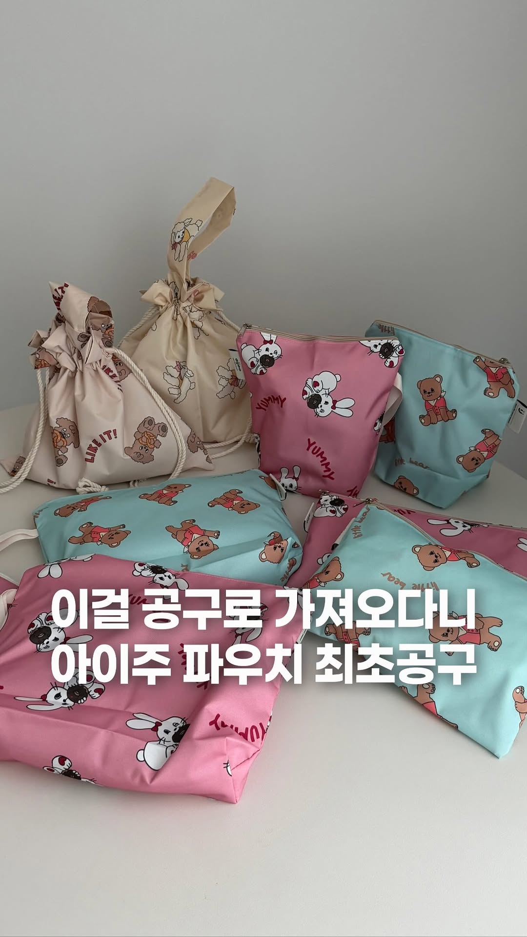 🙈 [ 최초공구 ] 아이주 파우치 🏷️ 1월 19일 월요일 오전 10시 공구 오픈됩니다 🏷️ 댓글에 [ 알림 ] 이라고 써주시면 공구 오픈 후 알림 드려요 💛 이걸 공구로 가져오다니요 !!! 작년에 왕창구매해서 진짜 너무너무 잘쓰고있는 파우치인데 소개해드릴수있게되었어요 !!! 💛 디자인 너무 귀엽고 품질 너무 좋고 가격 너무 착하고 진짜 완벽해요 ! 입소준비물 파우치는 아이주로 선택하세요! 🩷 🏷️ 100% 국내생산 🏷️ 아웃도어급 방수, 방오력 🏷️ 향균 테스트 완료 ! ( 정균감소율 99.9% ) 🏷️ 탄탄한 옥스포드 원단 🏷️ 어린이 안전확인 KC인증 완료 ♥️ 끈파우치 손잡이 달려있고, 끈으로 쪼으는 타입인데 요거 실내화 넣으면 딱 좋아요 ! 주원이도 1년동안 실내화 주머니로 쓰고있는데 사이즈 딱 좋아요 :) ♥️ 파우치 3종 제일 많이 쓰는 사이즈 3종으로 묶었어요 ▪ L 사이즈 : 식판파우치인데 사이즈 넉넉해서 수저통까지 다 넣을수있어요 ▪ M 사이즈 : 기저귀, 여벌옷 등 넣기 좋은 사이즈에요 ▪ S 사이즈 : 양치컵, 고리수건 넣기 좋아요 ! ♥️ 앞치마 4종 앞치마, 두건, 팔토시, 보관가방까지 모두 한세트에요 12개월부터 키 110cm까지 권장하는 사이즈에요 :) 🚀 공구옵션 ▪ 끈파우치 : 8,000원 ▪ 파우치 3종세트 : 19,700원 ▪ 앞치마 4종세트 : 24,200원 🏷️ 1월 19일 월요일 오전 10시 공구 오픈됩니다 🏷️ 댓글에 [ 알림 ] 이라고 써주시면 공구 오픈 후 알림 드려요 💛 💙 인스타 채널로 오시면 모든상품 공구 오픈 알람드려요 :)