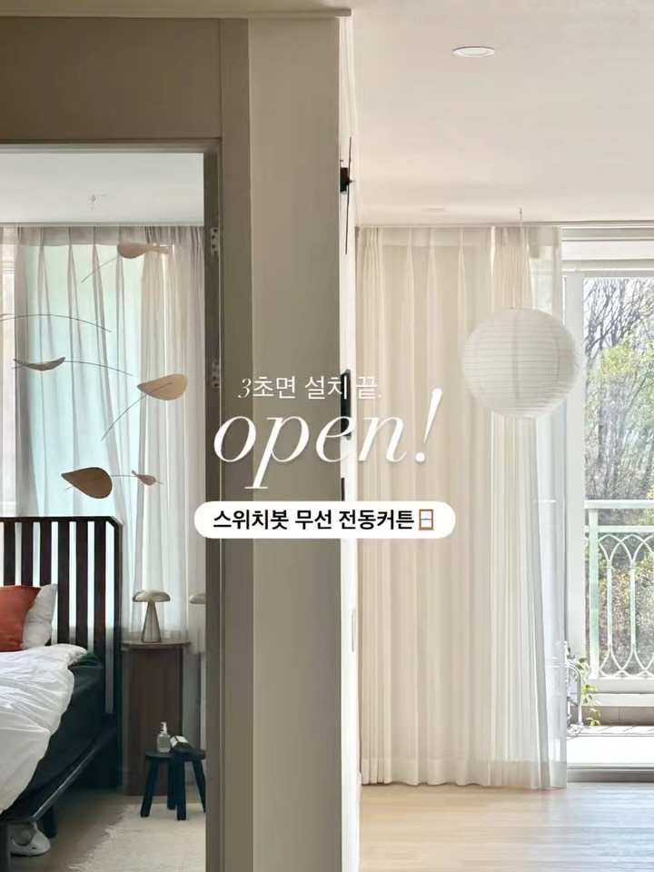 ✓ 무타공 전동커튼 𝙊𝙋𝙀𝙉 구매완료 이벤트 #잠시후10시오픈! 📌구매인증 EVENT 댓글에 구매완료+핸드폰 뒷 4자리 적어주세요 :) 네이버페이 5,000원 * 5분🎁 💚댓글 ”링크“ 남겨주시면 미리보기 링크 디엠으로 바로 보내드릴게요👋🏻 _______________________________________ 커튼 그대로✔️ 레일 그대로✔️ 시공비 0원✔️ 아침에 열고, 저녁 되면 닫고, 샤워하고 나와서 또 확인하고…ㅎ 특히 저희 집은 바로 앞이 등산로에 아래는 초등학교, 바로 맞은편엔 앞동 가끔씩 진짜 당황스러운 상황 나와요 😅 오랜 고민하다가 설치했는데 왜 이제 설치 했나 싶어요 ,,,? 베란다 트여있는 집은 사생활 + 편의성 둘 다 잡혀서 만족도가 미쳤구요....🥹💖 연예인 집에서 보던 전동커튼은 기본 100만원대라 엄두도 못 냈는데, 이건 ✔️ 1대당 10만원대 초반대 ✔️ 기존 커튼 그대로 사용 ✔️ 타공 없이 딸깍 설치 ✔️ 30초면 끝❗️ 무선이라 전선 지저분하게 늘어날 일도 없고, 한 번 충전하면 8개월 정도 사용 가능! 태양광 패널까지 연결하면 👉 충전 자체를 거의 신경 ❌ 그리고 제가 제일 많이 쓰는 기능! 🔆 아침 → 자동으로 열림 🌙 저녁 → 자동으로 닫힘 스케줄 한 번 설정해두니까 커튼 신경을 아예 안 쓰게 되더라구요! 손으로 살짝만 당겨도 자동으로 움직이고, 앱으로 1% 단위 미세 조절까지 가능해서 기계가 생각보다 훨씬 디테일하다는점 ! ———————— 📌 𝒄𝒉𝒆𝒄𝒌 𝒑𝒐𝒊𝒏𝒕 ✔️ 1% 단위로 채광 조절 가능 ✔️ 양쪽 커튼 따로 / 동시에 섬세하게 컨트롤 ✔️ 앱 연동으로 스케줄 설정 → 자동 열림/닫힘 ✔️ 저소음으로 부드럽게 작동 ✔️ 기존 커튼 그대로 사용 (레일 교체 필요 없음) ✔️최대 16kg 까지 무거운 암막 커튼도 가능 ✔️ 5m 높이 긴 커튼도 ok ✔️ 한번의 충전으로 8개월 사용 가능 ✔️ 태양광 패널 달면 별도 충전 없이 사용가능 (옵션) ✔️ 무거운 커튼도 안정적으로 사용 가능 📌𝒐𝒑𝒕𝒊𝒐𝒏 ◻ 전동커튼 1대 (레일형 / 봉형 선택) ◻ 전동커튼 패키지 (2대 + 리모컨 1개) ➕ 추가옵션 : 리모컨 / 태양광 패널 ❗️단문형 커튼은 1대 양문형 커튼은 여는 방향마다 1대씩, 총 2대 필요해요 (양쪽이면 2대 or 패키지 추천!) ⚠️태양광 패널 재고이슈로 태양광 패널이 포함된 주문의 경우, 패널만 4월 30일(금)이후 별도 발송됩니다! (나머지는 바로배송🚚) ———————— 🔺공구기간 4/20(월) - 4/24(금) 🔺오후 1시 이전 당일 출고