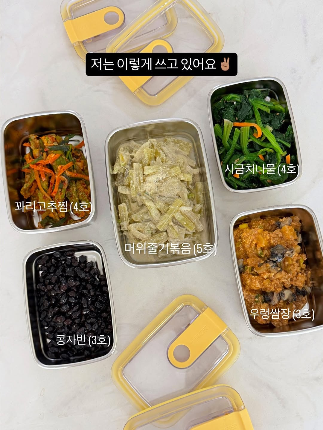 저는 반찬 정리 이렇게 하고 있어요💛 밑반찬 / 아이 반찬 / 김치까지 다 스텐락 스냅에 담아두니까 깔끔하고 쓰기 편하고 안이 바로 보여서 꺼낼 때도 편하더라구요 냉장고도 항상 깔끔해보여 아주 만족해요! 저는 풀세트 하나로 정리해서 쓰고 있는데 저처럼 한 번에 정리하고 싶으시면 풀세트✨ 조금씩 바꿔보고 싶으시면 데일리세트 / 라이트세트 를 추천드려요! 스텐락 스냅 내일 마감입니다✔️ 지금 프로필 링크에서 구매 가능해요💛