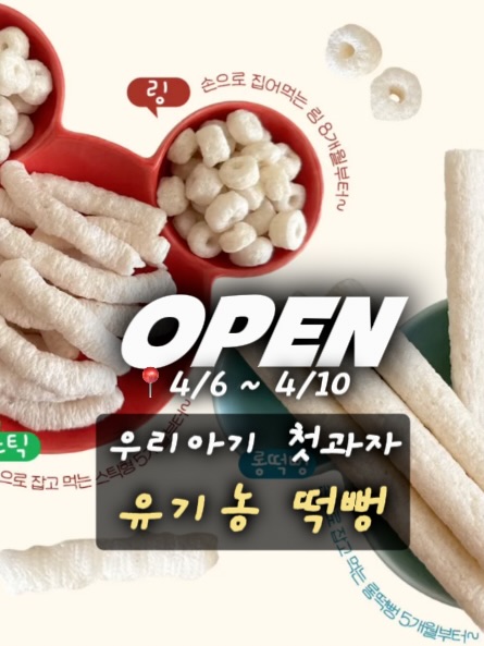 🌾우리아기 첫 떡뻥 #공구오픈 [베베]남겨주시면 최저가 링크 디엠 드려요! 프로필 링크에서도 구매가능 💘 📆 일정 : 4/9(목) ~4/13(월) 아기 과자 종류 엄청 많은데.. 성분 잘 보고사야하는거 아셨어요? 첨가물이나 설탕 안들어간 100% 유기농, 이런거 고르셔야 돼요. 첨가물 제로에 애아빠가 직접만든 영양가득한 유기농 원물이라 안심 (현미🌾, 고구마🍠,단호박🎃, 브로콜리🥦) 모양도 다양해서 롱/스틱형은 손에 잡고 먹기편하고 링형은 자기주도로 집어먹는 연습시키기도 좋아요! 건강한데 고소하니 맛있기까지해서 아이가 너무 좋아해요😍 유통기한도 넉넉해서 한세트사두면 우리아기 첫 과자고민 끝~!! ✅ 단하나의 첨가물 ❌ (원재료 외 무첨가) ✅ 영양가득 4가지 유기농 원물 ✅ HACCP 인증 안전 공정 ✅ 5개월부터 먹는 유기농 쌀과자 ✅ 스틱 / 롱 / 링 3가지 종류 🌿소비기한: 27년 3월 15일 📦 1세트 무료배송 ✨ 2세트 떡뻥 1봉 무료증정 3세트 떡뻥 2봉 추가증정 🎁구매 이벤트 1. 선착순 10분 아기 수저포크🍴 2. 오픈피드 댓글 추첨 ‘구매완료+폰 뒷 4자리’ 👉 네이버 5000 페이백 💚 #육아 #떡뻥 #아기과자 #베베모메
