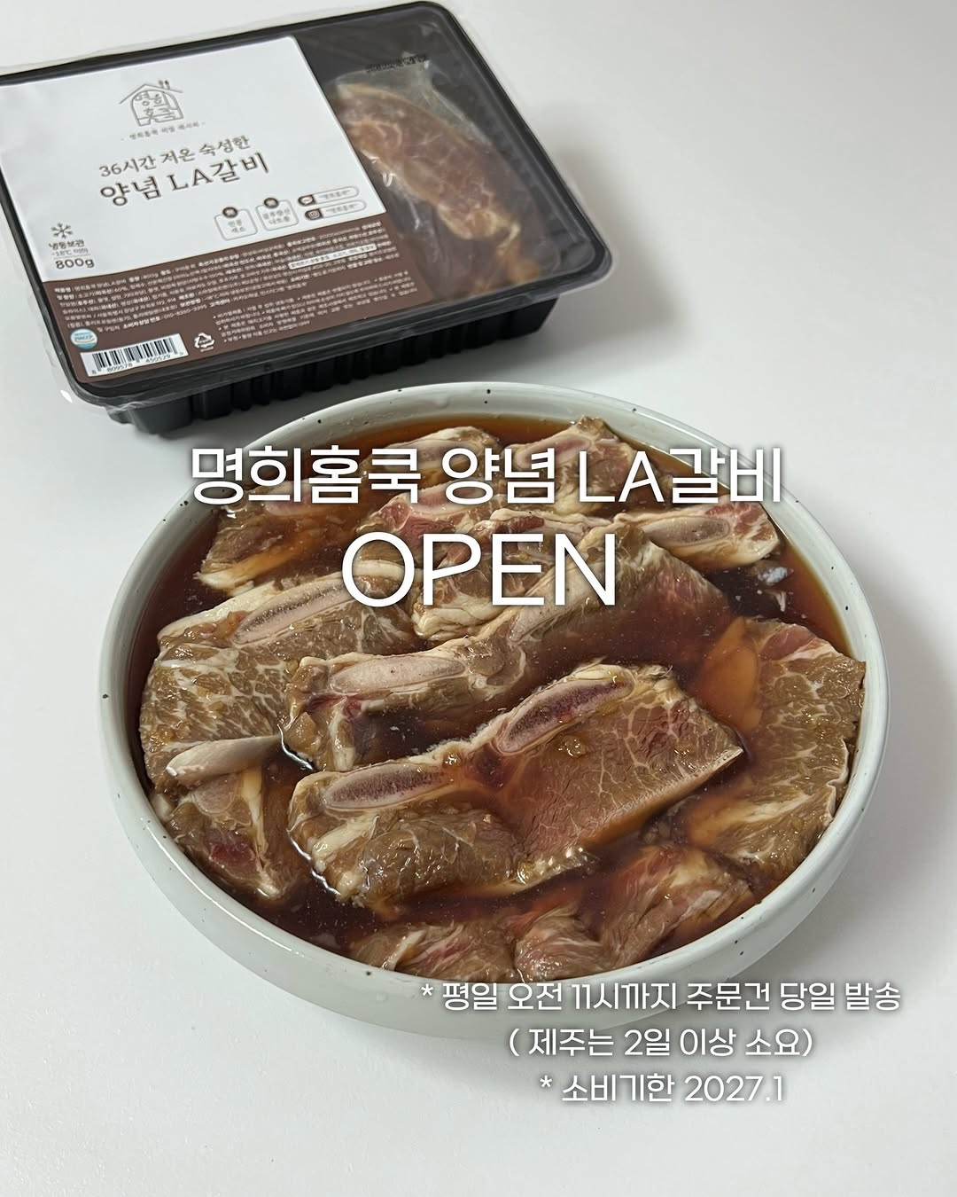 명희홈쿡 양념 LA갈비 open 🏷️ 🟠 3팩 이상 구매시 무료배송 🟠 평일 오전 11시까지 주문건 당일발송 💟 명희홈쿡 양념 LA갈비 구매완료 💟 구매완료 댓글 ( 후기포함 ) 을 남겨주시는 분들중 추첨을 통해 쿠팡 기프트 카드를 드립니다 [ 최*희 + 8810 ( 전화번호 뒷자리 )] 지지난 1월 런칭하고 꾸준하게 사랑 받고 있는 명희홈쿡 양념 LA갈비 🙆🏻♀️ 아이만, 어른만 먹는 한정적인 음식이아닌 모두가 함께 먹을 수 있는 먹거리중 하나죠 ! 개발하는데 정말 고심에 고심을 거쳤답니다 ( * 맛있게 요리하는법은 넘겨서 영상을 꼭 확인하세요 ) 명희홈쿡 양념 LA갈비는 아이부터 어른까지 즐길 수 있게 첨가물을 최대한 빼고 적당히 단짠 하게 만들었어요 인공색소, 글루탐산나트륨을 넣지 않고 농축액이나 가루 양념을 사용 한게 아닌 생야채와 파인애플을 갈아 넣어 집에서 만든것 처럼 맛있어요 💪 연.육.제.를.넣.지.않.고 저온 숙성을 했답니다 ! 설탕이 들어갔던 부분은 사.탕.수.수 원당으로 대체해서 부드러운 단맛을 느끼실 수 있게 맛을 잡고 아보카도오일과 표고버섯을 넣고 36시간 숙성해서 육질이 부드러워 씹는맛도 부드러워 만족 하실 거예요 ☺️ ( * 더 부드럽게 드시고 싶으신 분들은 찜으로 만들어 보세요) 명희홈쿡이 개발하는 제품들은 아이와 어른이 모두 함께 맛있게 먹을 수 있어야 하잖아요? ⭕️ 아이용으로 구워낼때는 추가 양념을 넣지 않고 구워서 살부분만 발라 잘라서 부드러울떄 아이들에게 주시면 되고 ⭕️ 어른들용으로 구워낼때는 양념을 더 부어 쎈불에 단짠 단짠하게 졸여 내면 된답니다 🙌 ( 양념 절대 버리지 마세요 ❗️) ⭕️ 더 부드럽게 드시고 싶으면 푹 졸여내 갈비찜으로 드셔보세요 🍖 명희홈쿡 양념 LA 갈비 🍖 ▫️ 적당히 뼈가 작은 원물을 사용해 고기양이 많고 10mm 두께로 썰어낸 다음 맛있는 정도의 기름을 남기고 손질 했어요 ( * 기름을 아예 제거하면 맛이 없어 어느정도의 기름이 있습니다) ▫️초이스 상위 등급의 소고기를 사용해 육질이 연하고 풍미가 좋아요 ▫️인위적인 첨가물을 최대한 배제해 아이부터 어른까지 모두 안심하고 맛있게 양념까지 먹을 수 있어요 ( 인공색소, 글루탐산나트륨, 농축액 무첨가 ) ▫️자극적인 양념이 아닌 국내산 생야채와 파인애플, 아보카도 오일을 넣어 36시간 저온 숙성해 잡내를 제거하고 고기를 부드럽게 만들었어요 정말 맛있게 만든 명희홈쿡 양념 la갈비 ! LA갈비찜 , 구이 , 김치찜 등 ✔️ 건강하고 맛있게 만든 명희홈쿡 양념 LA갈비로 온가족이 행복한 식사 하세요 ♥️ 🔸 일정 : ~ 4/13 까지 할인가로 구매! 🔸 구매: @myunghee_homecook 제 프로필 하단 링크에서 가능 하세요 ( 평일 낮 11시 까지 주문건 당일 발송됩니다) 💟 명희홈쿡 양념 LA갈비 구매완료 이벤트 💟 구매완료 댓글 ( 후기포함 ) 을 남겨주시는 분들중 추첨을 통해 쿠팡 기프트 카드를 드립니다 * 최*희 + 8810 ( 전화번호 뒷자리 ) * 스토리 후리 또는 @ 친구 소환시 당첨확률 up !