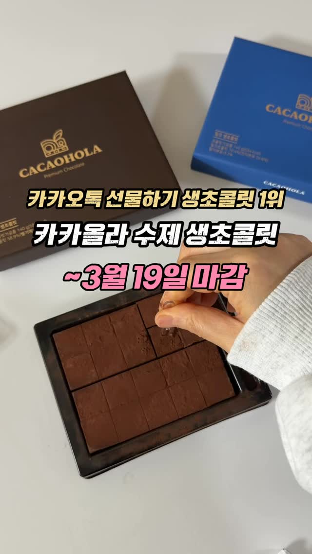 [광고,공동구매]🌷카카올라 생초콜릿🌷 카카오톡 선물하기 생초콜릿 1위 1만명 이상의 후기 누적판매 100만+ 총10가지 종류로 밀크, 다크, 녹차, 인절미, 딸기, 땅콩, 얼그레이, 헤이즐넛, 민트, 바닐라라떼 입맛따라 취향따라 골라드세요 ☺️ 한입 베어물면 입안에서 사르르르 쫀득 달달 부담없는 선물로 딱이예요 ! 고급진 박스안에 담긴 초콜릿 170년 전통 카카오바리 프랑스 프리미엄 커버춰 사용 2021년, 오트밀크 생초콜릿 제조법 세계 최초 특허 취득 동물성 크림을 사용하지 않은 프리미엄 초콜릿이예요 ✅ 오트밀크 기반 특허 제조법으로 만든 생초콜릿 오트밀크를 활용한 독자적(특허) 제조 기술로 만들어져, 부드러운 풍미와 깊은 초콜릿의 질감을 동시에 살렸습니다. ✅ 우유 대신 오트밀크 사용 기존 생초콜릿에서 흔히 사용되는 유제품을 배제하고 식물성 오트밀크로 대체하여, 우유 성분을 섭취하기 어려운 분들도 부담 없이 즐기실 수 있도록 개발했습니다. ✅ 유당을 사용하지 않은 레시피 유제품을 넣지 않는 제조 방식으로 만들어져, 유당 섭취에 민감한 고객들도 보다 편안하게 즐길 수 있는 생초콜릿입니다. ✅ 깔끔한 맛과 부드러운 텍스처 오트밀크 특유의 고소함이 더해져, 입안에서 사르르 녹는 부드러운 생초콜릿의 매력을 한층 높였습니다. ❣️오후2시이전주문시 당일출고 ❣️수령즉시 냉동보관해주세요 자연해동 하여 드시면 쫀득한 식감과 풍미를 느낄 수 있습니다. 생초콜릿은 온도에 예민하여 장시간 냉장보관 또는 실온보관 시 변질될 수 있으니 반드시 냉동보관 부탁드립니다. #파베초콜릿 #카카올라생초콜릿 #카카올라