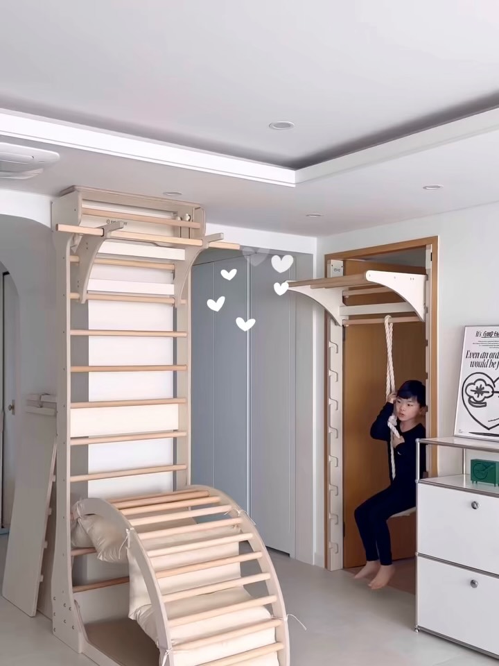 예고/알림🔔〰️ 슈로스도어 더 핏🩵 미리보기 보여드릴게요. 바쁜 일상 속에 운동 포기 하지마시고 가깝도 편안한 공간에 환경을 만들어주세요! 개인적으로는 기본 구성에 풀업바와 슈로아크+아크쿠션은 무조건 함께하시고💗 ( 제일 많이 활용하게 되거든요 ) 원형그네는 아이가 진짜 좋아해서 추가 추천! 미끄럼틀이나 오르락 내리락 대 근육 발달에는 클라이밍 슬라이더 구성품도 너무 좋으실거에요🤢 그리고 함께 데려온 해먹도 무조건 함께 구매하셔요! 아이는 놀이터로 재밌고 나도 모르는 사이에 대근육 발달✔️ 엄마, 아빠는 간단하지만 매일 꾸준히 운동을 할 수 있어 건강을 챙길 수 있는✔️ 공간 차지없이 생활에 녹아드는 도어슈로스바 놓치지 마시고 꼭 설치해서 누리셨으면 좋겠어요. ⚠️설치안내⚠️ 설치는 간단해요! 문틀에 맞게 세워 나사만 조아주면 끝✔️ 설치 하실 공간의 문틀 사이즈 정확하게 재어주세요 안전하게 사용하실 수 있게 집 문틀에 딱 맞게 제작됩니다. 문틀은 폭 길이를 측정하시면 되는데, 이 길이가 70mm 이상시 설치가 가능합니다. ( 도어슈로스바 90mm 사이즈 ) 높이는 문틀 수직으로 정확하게 측정, 가로는 상/중/하 수평으로 재어 가장 낮은 수치로! ⚠️배송안내⚠️ 맞춤 제작되는 제품이라 3-4주 소요기간 있습니다. ⚠️이벤트 예정⚠️ 선착순 3명 + 구매인증 7명 원형그네 증정🎁 3/20 금요일 오전 10시에 링크가 오픈되며, 구매인증은 오픈 릴스에 휴대폰 뒷4자리와 함께 댓글남겨주시면 됩니다☺️ 선착순 이벤트 있으니🏃🏻 ‼️오픈 알림 원하시면 [ 놀이터 ] 댓글 남겨주세요💌 #아이있는집 #아이있는집인테리어 #슈로스바 #문틀철봉 #홈놀이터