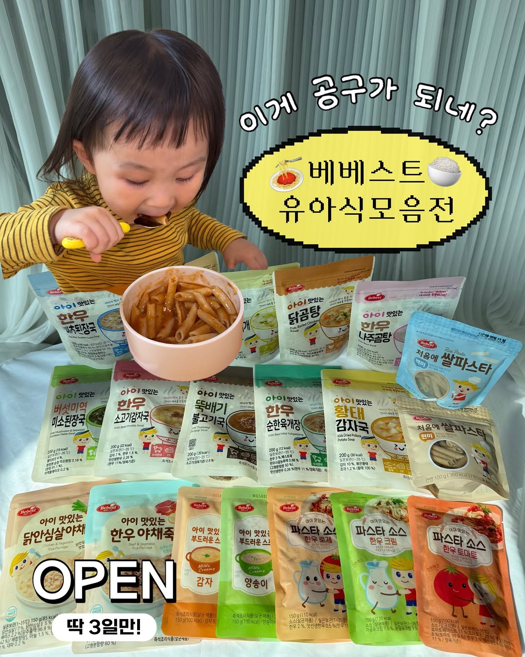 이마*에서 사던 그 브랜드😳 #베베스트 #유아식공구 OPEN 요즘 제가 백날 열심히 만들어줘도 안 먹고, 입 꾹 닫고, 괜히 짜증내고… 내가 끓인 국은 그렇게 안 먹더니!!!• ᴗ •̥ ˳ ˳ #베베스트유아식 은 진짜 잘먹는다? 그래서 요즘은 제 요리만 고집 안 하고 간편식 같이 쓰고 있는데! 이건 좀 인정..💛 베베스트에서 맛있는 걸로만 골라왔어요(▰˘◡˘▰) 전자레인지 돌려서 그냥 부어준 건데?? ✔ 국밥만 말아줘도 잘 먹고 ✔ 파스타는 거의 흡입 수준!! ✔ 스프까지 싹싹 …뭐죠 이 차이😂 ⠀ ⠀ 💛베베스트유아식 선택한 이유💛 ✔️ 유명브랜드! 맛,성분 안심하세요 ✔ 한 팩 양 넉넉해서 2번 나눠 먹이고 ✔ 국은 건더기 진짜 많아서 든든하고 ✔ 반찬 없어도 밥 말아주면 한 끼 끝 ✔️ 한식ㆍ양식ㆍ간편식 다양한 구성 아마 이마*나 쿠*에서 베베스트 한번쯤은 사먹여 보셨을거에요. 워낙 유명하니까~! 전 베베스트 돌이후부터 먹여봤는데요. 엄마 입장에서 너무 편해요. 아이는 너무 잘먹구요. 특히 바쁜 날, 애가 유독 안 먹는 날 그리고 메뉴 생각하기 싫은 날 이거 하나 꺼내면 밥 스트레스가 확 줄어요. 맛없는 건 애들이 절대 안 먹잖아요? 이건 “애가 잘 먹는다” 이거 하나로 끝. 그렇다고 간이 세고 자극적이냐? 그건 절대 아닌데. 그냥 맛있게 잘 배합했어요. 이런게 바로 유명 유아식 브랜드의 노하우😎👍 한식 / 양식 / 간편식까지 랑랑이가 잘먹는 라인으로만⭐⭐⭐⭐⭐ 베베스트 유아식 모음전 준비했어요. ⠀ ⠀ •┈┈┈•┈┈┈•┈┈┈ ⠀ ⠀ [ 랑랑맘 x 베베스트 ] 🗓 3.20금~22일 , 3일간 🍚 한식 국 10종 🍝 양식 파스타 / 소스 🥣 간편식 죽 / 스프 종류 다양하게 구성~ 아침ㆍ점심ㆍ저녁까지 💕간편하게 💕건강하게 💕맛있게 #유아식 걱정 끝~~~~~ ⠀ 🎁구매인증 이벤트! 3천원 페이백(5명) "구매완료+휴대폰 뒷자리4개" 오픈피드에 댓글로 달아주세요! ⠀ ⠀ 📌댓글로 '링크' 달면 바로 최저가링크 슝=͟͟͞͞➳❥