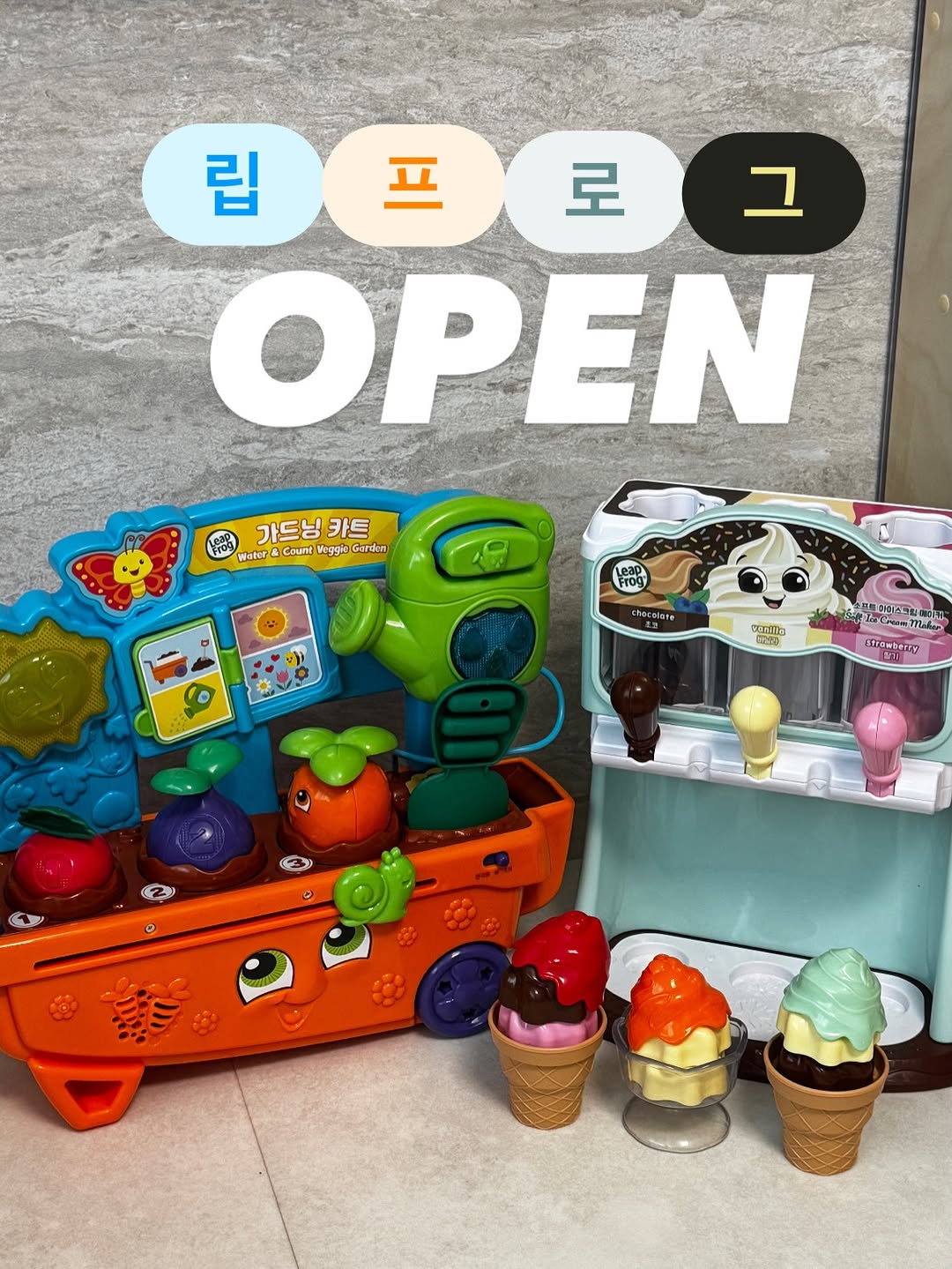 [링크]남겨주시면 할인링크 디엠 발송💌 언어발달 전문교수가 추천하는 말트이는 놀이템 립프로그🗣️ 소근육 발달부터 , 다양한 오감 숫자감각까지 키우는 가드닝 카트🧑🌾 실감나는 물소리도 듣고 한국어•영어 2가지 버전으로 영어노출도 한번에〰️ 아이 첫 역할놀이는 아이스크림 메이커🍦 (토핑콘 추가 증정) 아이스크림을 맛별로 넣어보고 레버를 당겨서 아이스크림 만들고 다양한 토핑까지 올려주면 완성 역할놀이를 상호작용하면 사회/언어/인지발달을 촉진시킬수있어요 라방보다 공구가 더 저렴한거 아시죠? 말트이는 놀이템 할인링크 받아가세요❤️ #립프로그 #국민장난감 #가드닝카트 #소프트아이스크림메이커 #언어발달장난감