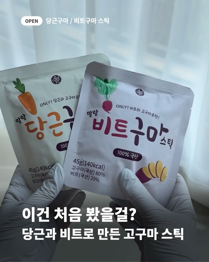 [공구오픈] 자연시간 당근구마 / 비트구마 스틱 💌 구매를 원하시면 댓글에 ‘링크’ 남겨주세요 구매하실 수 있는 링크 DM으로 바로 보내드릴게요! 이런거 본 적 없을걸요? 진짜 흔한 고구마스틱 아니에요🫢 평소엔 잘 안 먹는 비트, 당근을 고구마랑 같이 만들어서 아이들이 거부감 없이 너무 잘 먹어요! 종류는 두 가지! ✔ 비트구마 = 국산 비트 20% + 국산 고구마 80% ✔ 당근구마 = 국산 당근 20% + 국산 고구마 80% 근데 이게 더 좋은 건, 저렴한 분말 조금 섞은 제품이 아니라는 거예요. 국산 비트, 당근, 고구마를 껍질째 통으로 쪄서 으깬 뒤 열풍으로 바삭하게 구워냈어요✨ 그래서 ❌ 설탕 ❌ 밀가루 ❌ 기름 ❌ 인공감미료 ❌ 방부제 ❌ 물까지도 안 넣음 오직 자연 원물 100%만 들어간 간식이에요🥹 게다가 사용하는 원물도 아무거나 아니고, 제주·영암·무안 같은 청정지역에서 재배한 국산 상급 원물만 사용했대요. 백화점 납품되는 원물이라 더 믿음 가고, 먹어보면 확실히 더 달고 맛있어요🤍 ✔ 100% 국산 채소 ✔ 분말 말고 진짜 통채소 ✔ 비트·당근까지 함께 먹는 고구마스틱 그래서 엄마 입장에서는 오늘 채소 좀 먹였다… 싶은 마음도 들고🥹 아이들은 그냥 맛있다고 달라고 하고요ㅋㅋ 저희 집은 들고 나가면 진짜 순삭이에요! 하원 후 간식, 외출할 때, 차 안에서, 심지어 늦잠 잔 날 등원길에 하나 쥐여주기에도 너무 편해요🤍 한번 먹어보면 왜 다들 쟁이는지 아실 거예요🫶🏻 ㅡㅡㅡㅡㅡㅡㅡㅡㅡㅡㅡㅡㅡㅡㅡㅡㅡㅡㅡㅡㅡㅡ 📢 공구 기간 | 4월 8일(목) ~ 4월 12일(일) 📌 프로필 링크에서 구매 가능!