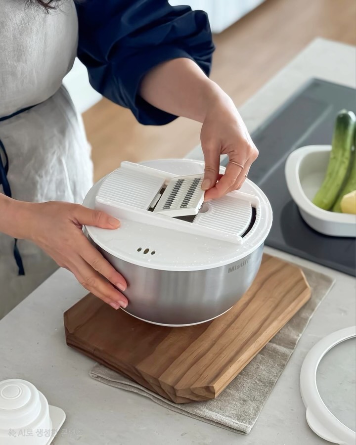 미스티파이 야채탈수기는 채소를 썰고 씻고 탈수까지 한 번에 해결해 주며, 다양한 기능으로 요리 시간을 단축시켜 줍니다. 5L 대용량과 튼튼한 304 스텐 소재로 변형 걱정 없이 오랫동안 사용할 수 있습니다.
