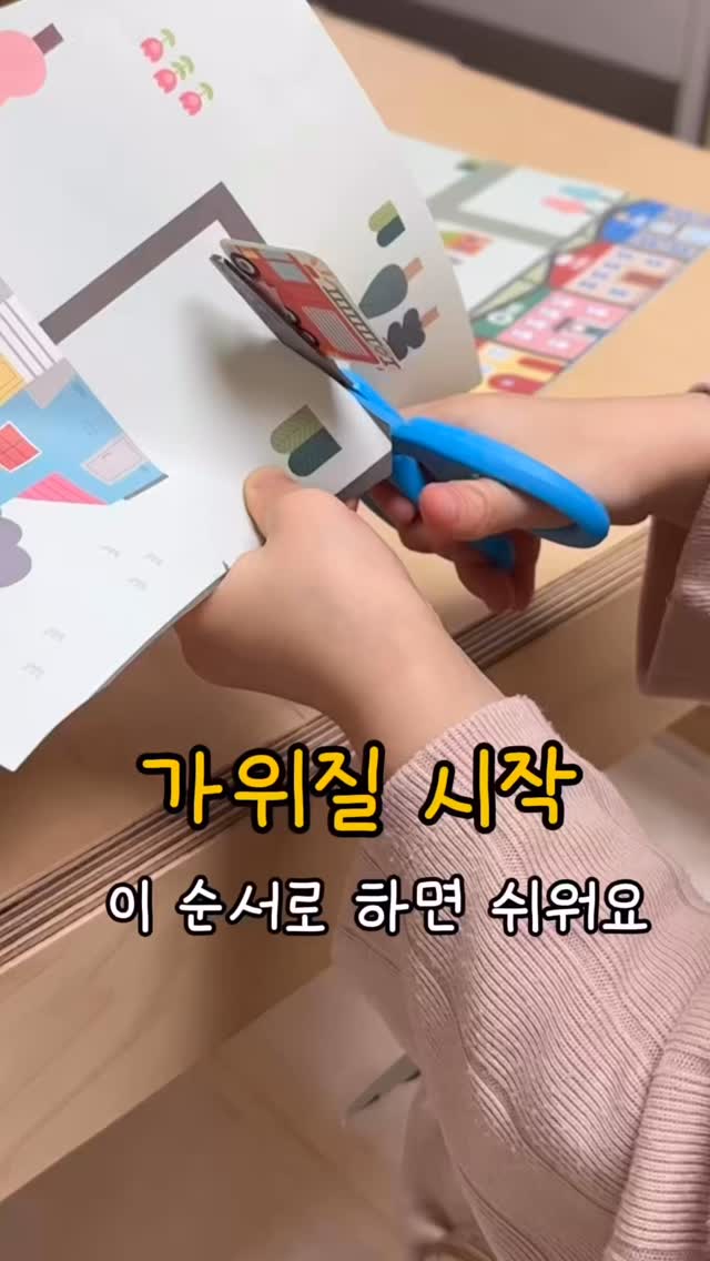 ✂️가위질 정복하기!! #공구중 #타코가위 타코가위 많은 사랑 보내주셔서 감사해요💛 다온이랑 두돌 전부터 해본 방법 공유해볼게요✂️ 1️⃣처음엔 긴 막대형태로 짧은 선 → 긴 선 → 지그재그 → 곡선으로 난이도를 천천히 올려주세요 2️⃣종이 두께는 100-120g 정도가 적당해요 너무 얇으면 가위가 헛돌고 너무 두꺼우면 힘 조절이 어려워요 3️⃣엄지손가락이 하늘을 보게! 손목이 꺾이지 않게 잡는 게 중요해요 (손등이 하늘을 보면 안돼요) 4️⃣양 옆을 잡아서 ‘잘리는 느낌’을 아이가 직접 느끼게 해주세요 5️⃣“싹둑! 싹둑!” 효과음 + 바로 칭찬 이게 진짜 중요해요☺️ 재미있어야 스스로 계속 하려고 하더라구요 계속하다보면 자신감도 상승!!! ✂️가위질은 ‘예쁘게’보다 많이 해보는 경험이 먼저예요 다오니도 처음엔 어려워했는데 타코가위로 시작하면서 훨씬 편하게 적응했어요 ✅ 날 없이도 잘 잘리는 ✅ 1000원 안전가위로 ✅ 처음 가위질 시작하는 아이도 ✅ 부담 없이 사용 가능 ✅ 아이 손에 맞는 사이즈로 안정적인 그립감 ✅ 레드그립&소프트그립 가위 추천!! +누리과정 연계 워크북까지 함께라서 집에서도 자연스럽게 연습 이어가기 좋아요👍 댓글에 “가위” 남겨주시면 바로 링크 보내드릴게요💛