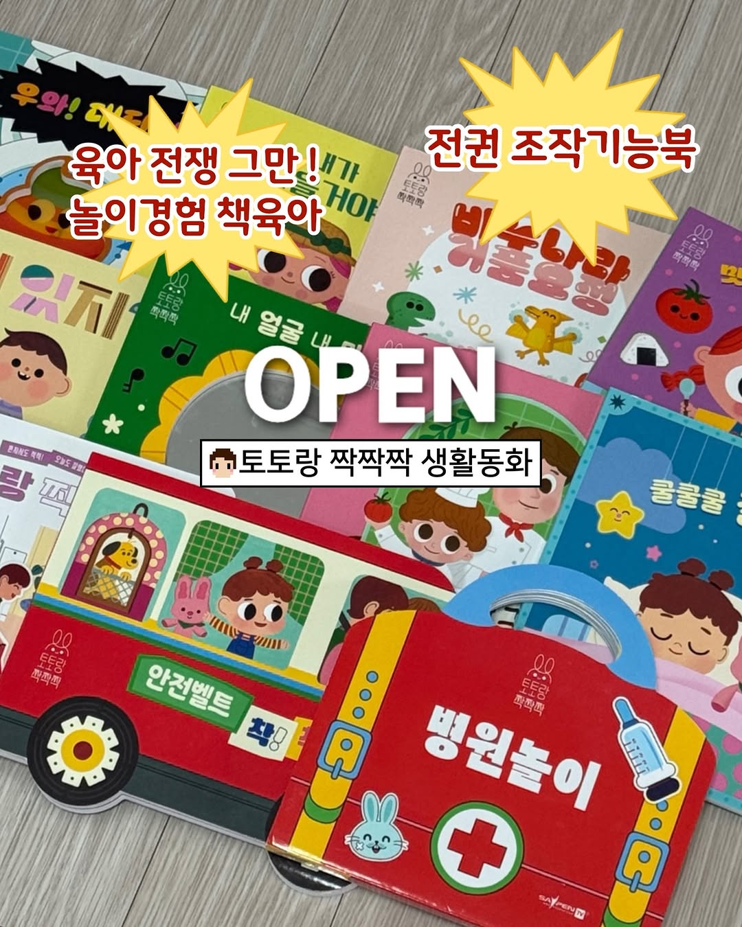 💛토토랑 짝짝짝 생활동화 OPEN #공구오픈 _______________________________ 🎁 구매완료 이벤트 🎁 구매완료 + 전화번호 뒷 4자리 남겨주시면 추첨을 통해 네이버페이 3천원 3분 발송 _______________________________ ⠀ 아이가 직접 만지고, 열고, 누르고, 붙이며 놀이처럼 생활습관을 배우는 전권 조작북 세트예요🤍 ⠀ ✔️ 국내최초 숟가락 사운드북 숟가락으로 밥을 먹여보며 골고루 먹기 습관 잡기 ⠀ ✔️ 국내최초 안전벨트 그림책 직접 벨트를 채우며 안전습관 익히기 ⠀ ✔️ 병원놀이 그림책 주사, 약먹기 놀이로 병원 거부감 줄이기 ⠀ ✔️ 손씻기 / 위생 습관책 놀이처럼 따라 하며 손씻기 습관 형성 ⠀ ✔️ 배변활동 불빛 사운드북 재밌는 사운드와 불빛으로 배변훈련 흥미 UP ⠀ ✔️ 말랑이 스티커북 붙였다 떼며 소근육 발달 + 집중력 향상 ⠀ ✔️ 칭찬스티커 시스템 좋은 행동 후 스티커 보상으로 반복 습관 잡기 ⠀ ⠀ 읽기만 하는 책보다 직접 행동으로 연결되는 책이라 아이 반응이 정말 좋더라고요 💛 ⠀ 특히 0~5세 아이들 생활습관 시작할 때 추천드려요 👶🏻✨ ⠀ ⠀ 📍 공구기간 : ~ 4월 26일 🛒 프로필 링크에서 바로 구매가능 ! #생활동화 #책육아 #아기책추천 #조작북