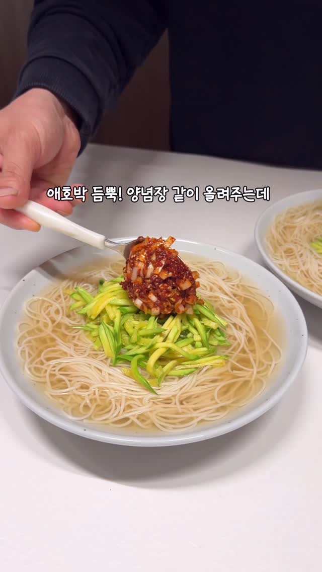아빠표 요리 ‘애호박 국수’🧔🏻♂️ 애호박 하나만 있으면 되니 정말 간단한데 애호박을 살짝 식감있게 볶고 , 매운고춧가루로 만든 양념장 얹어 먹으니 완전 칼칼하고 맛있는 뜨끈한 애호박 국수 였어요 ☝️ 육수는 언제나 베스트 ! 명희홈쿡 바로육수 두포에 국간장으로 기본 간 맞춰줬는데 어쩜 이렇게 맛있대요 어떤 요리에도 다 잘 어울리지만 뜨끈한 국물요리에 특별하게 더 잘 어울리는거 아시죠? 해산물+소고기 올인원 타입이라 어떤 주재료 부재료가 있어도 요리가 완성도가 높고 맛있어지니 이번주에는 애호박넣어서 뜨끈한 애호박국수 만들어 드셔보세요 ! 🤘 파김치 같이 곁들이면 꿀맛인거 아시죠? 더테이블 전라도김치 모음전도 둘러보고 가세요 💛 🥒 애호박 국수 [ 양념장 : 맛간장 4, 고춧가루 1.5, 다진파 다진마늘 0.5 , 참기름, 깨, 후추가루 ] 1. 애호박은 조금 두껍게 채 썰어 소금 약간 뿌린 다음 들기름을 두르고 쎈불에 빠르게 볶아내 아삭함을 유지한다 2. 양념장을 만들어 놓는다 3. 물 800-900ml 에 바로육수 두포, 국간장 1스푼 넣어 기본 육수를 만들어 끓인다 4. 면을 삶아 씻은 다음 그릇에 담고 육수에 토렴한다 5. 면위에 육수를 붓고 애호박 볶음 , 양념장을 크게 한스푼 올려낸다 ________________________________ 📍구매 : @myunghee_homecook 제 프로필 링크에서 가능하세요 * 박스당 바로육수 4.5g/40포 📍배송 : cj대한통운 / 평일 오후 2시 이전 주문건 당일발송 💟 바로육수 41차 구매 이벤트 💟 1. 명희홈쿡 바로육수 2개 이상 구매자중 추첨을 통해 명희홈쿡 떡갈비를 5분께 보내드립니다 ( 랜덤선택 자동발송 ) 2. 명희홈쿡 바로육수 2개이상 구매자중 추첨을 통해 명희홈쿡 갈비탕을 5분께 보내드립니다 ( 랜덤선택 자동발송) 3. 바로육수를 구매하시고 구매완료 댓글을 달아주시는 분들 중 추첨을 통해 쿠팡 장보기쿠폰을 보내드립니다 ⭐️ ex) 구매완료 최*희 + 8810 (전화번호 뒷자리) ⭐️ 스토리 구매인증 또는 @ 친구 소환시 당첨확률 up! ⭐️ 스토리 후기나 구매인증시 @myunghee_homecook 저를 꼭 태그해 주세요