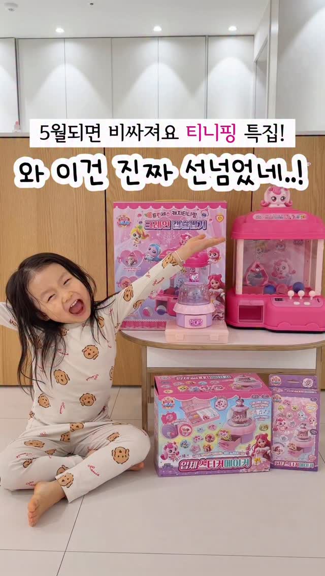 어린이날을 맞아 티니핑 크레인 캡슐뽑기, 입체스티커 메이커 등 다양한 상품을 할인된 가격에 제공합니다. 사전 이벤트도 진행 중입니다.