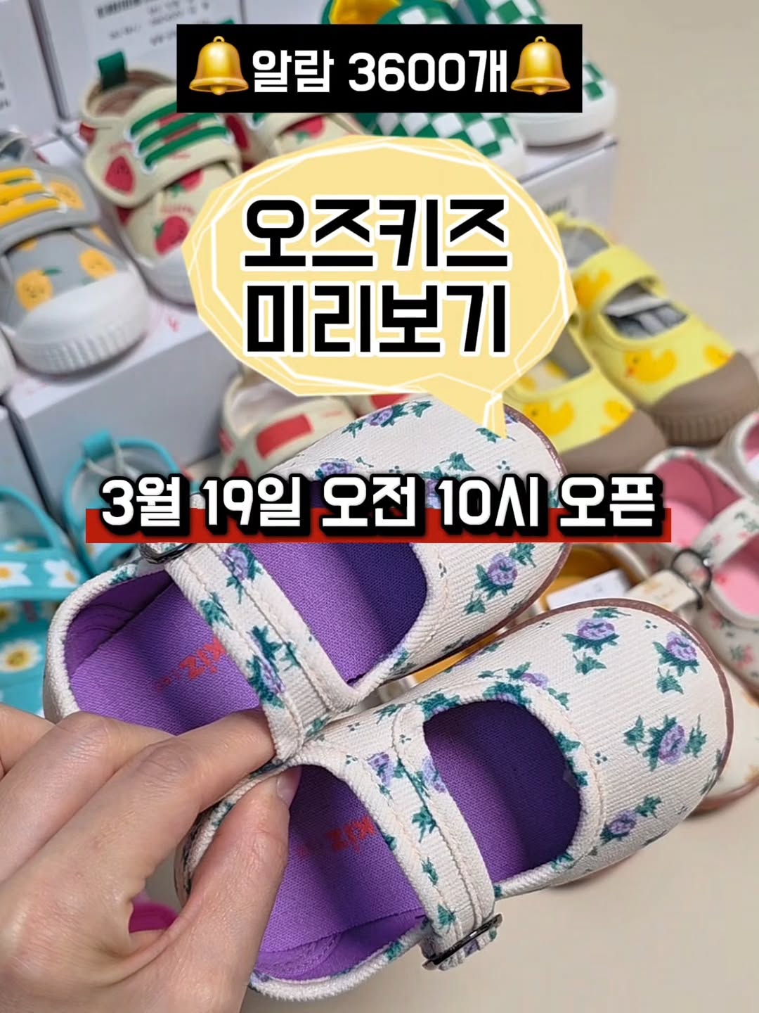 D-2 🔥1만원대🔥 드디어 떳다! 👟오즈키즈 핫딜👟 🗓3월 19일 오전 10시 오픈 예정🗓 ✨️구매하실분들은 공지채널 들어와주세요✨️ 가장 빠르게 링크 받아보실 수 있습니다. 🚨링크 필요하신분들은 댓글에 '링크'적어주세요🚨 🚨오픈시, 순차적으로 자동화DM으로 구매링크 전송됩니다🚨 - 여러분 ! 요즘 시즌이라서 ㅠㅠ 오즈키즈 물량이 정말 빠르게 빠지고 있다고해요 ! 한정수량으로 진행됩니다.😢 가격 메리트가 너무 좋아서ㅠㅠ 예약발송 가능한지 요청해놓은 상태입니다.❤️ 알림 댓글 많이 많이 달아주시면, 본사에 강.력.하.게 어필해볼게요 ! ! 😎🙌 구매하실 분들은 꼭 오픈런 부탁드리며, 모찌맘 공지채널에 들어오시면 링크 먼저 받아보실 수 있습니다. 가격은 마지막까지 🔥최최최최저가로 협의중이니,🔥 조금만 기다려주세요 ! - 발이 편한 아기신발 찾고 계신분들 !🙋♀️ 금방 크는 아기들..신발 비쌀 필요없잖아요.❌️ - 그래서, 제가 찾아왔습니다 ! ✨️백화점 입점 슈즈 브랜드✨️ 👟오즈키즈👟 - ✅️부드러운 100% 면 소재 👉착용감이 기가 막혀요 ! 답답함 없음❌️ ✅️말랑말랑유연한 몰드창 👉장시간 착용해서 편안한 이유 ! ✅️벨크로타입 👉신발 신고 벗기 편해요 😉 ✅️논슬립 미끄럼 방지 👉안전하게 신을 수 있어요. 뛰어다녀도 안심 ! ✅️폭신폭신 쿠션감 👉걸음마 신발로도 완전 추천❤️ - 무엇보다 디자인이 너무 이쁘잖아요! 귀염뽀짝 꼬까신 어떠세요 ? 📌라인업📌 ✅️피쿠 3가지 ✅️블룸 3가지 ✅️쁘띠팝 4가지 ✅️후르츠봉봉 4가지 ✅️체크보더 3가지 ✅️컬러픽 3가지 하나만 사는거 어떻게 하는건데... 아들맘 딸맘 모두 모여주세요~✋️ - 가격 마저 착해버림.. 1만원대부터 제일 비싼게 20,900원 ? 👀 🔥하나만 사도 무배라니 ! !🔥 하나만 사는거 어떻게 하는거쥬..? 5켤레 구매해도 10만원이 안되네?👀 - 📌사이즈 고르는 TIP📌 ✅️사이즈 : 정사이즈 ~ 반치수 업 ✅️발 볼 : 적당 ~ 넓음 오즈키즈 제품은 평균적으로 이렇게 봐주시면 되세요 ! - 🙋♀️ 제가 직접 신겨보니, 대부분 정사이즈에요. 양말 신고, 찍찍이로 조여주면 되니깐 정사이즈 보다는 반사이즈 UP 하시면 좋을 것 같아요. ✨️반사이즈 UP 추천 ! !✨️ 조금 더 오래 신기고 싶어요 하시는 분들도 계시죠. 한사이즈 UP은 많이 남긴하지만, 찍찍이로 조여주니 넘어지지 않더라고요 ! 참고만 해주세용.ㅎㅎ👀 깔창도 구매 가능하시도록 추가 옵션에서 구매 가능합니다.❤️ - 인기 사이즈 품절되기전에 오픈런 추천드려요🩷