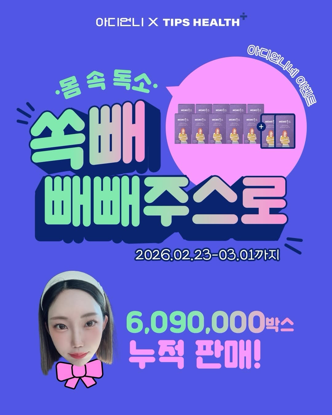 당 0g 천연성분으로 몸매관리를 도와주는 해독 주스입니다. 2월 23일부터 3월 1일까지 공동구매 신청을 받습니다.