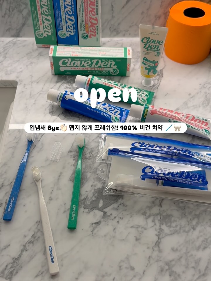 #클로브덴 #치약 #칫솔 #구매완료이벤트 🦷국내 치과의사 중 0.1% [👨🏻🎓치의학 박사]가 만든 브랜드🌟 양치해도 찝찝한 느낌, 저만 그런 거 아니죠? 🥹 입냄새는 물론 시린이, 누런이까지 신경 쓰인다면 드엘리사에서 보여드리는 클로브덴 OPEN ! 🪥💙💚🩷 한번 쓰면 왜 꾸준히 찾는지 알게 되는 만족도 높은 구강케어 브랜드 ✨ 모든 구성에 통 크게 "큰 사이즈의 본품"을 팡팡 증정드려요 🤗🎊 구성(가격표) 꼭 확인해보세요 💛 ⭐️ EVENT 안내 ⭐️ 🎁 7만원 이상 구매 고객 "전원" <클로브덴 본품 치약 1개>를 증정해드려요! (오리지널or센서티브) 🎁 패밀리 세트 구매 고객 "선착순 100명" <오리지널 미니 치약 1개>를 선물로 드립니다! 🎁 구매완료 후 "구매완료+휴대폰번호 뒷 4자리"를 댓글에 남겨주시면 10분께 <트래블 키트 1개>를 증정해드립니다! 📌 이벤트 소식은 스토리와 @de_elisa_market 계정에서 안내드려요❣️ 💙 오리지널 치약 데일리용으로 가장 추천드리는 기본템! 구취, 치태 제거, 치석 침착 예방, 잇몸 케어까지 전체적으로 밸런스 좋게 챙기기 좋은 치약이에요✨ 텁텁함 없이 개운한 마무리감이라 온가족 함께 쓰기에도 좋아요! 💚 센서티브 치약 찬물, 찬 음식 먹을 때 이 시림이 불편하셨다면 센서티브 라인 추천드려요!! 예민한 치아와 잇몸도 부담 적게 사용할 수 있고, 시린이 완화와 구취 케어를 함께 챙기기 좋아요. 🩷 미백 치약 3중 슈퍼 액션 (치아 미백, 보호막 형성, 광택 코팅) 커피, 차, 음식 착색 때문에 치아 톤이 점점 신경 쓰이셨다면 미백 라인 추천드릴게요 🦷✨ 🪥 이중미세모 잇몸 칫솔 (화이트/그린/블루) 칫솔 하나만 바꿔도 양치 느낌이 달라지잖아요! 부드러운 이중 미세모와 슬림한 헤드, 환경을 생각한 우드칩이 포함된 칫솔대로 잇몸 자극은 줄이고 구석구석 꼼꼼하게 닦기 좋은 칫솔이에요✨ 👧🏻👦🏻 키즈 치약🧡 (2~6세 사용 권장) 아이의 첫 양치 습관과 구강관리를 고려해 좋은 성분으로 신중하게 설계된 키즈 치약이에요 ✨ 불소 1000ppm 함유로 충치 예방에 도움을 주고, 망고맛으로 아이들도 부담 없이 사용하기 좋아요. 자연유래성분 기반에 비건 인증까지 더해져 안심하고 사용할 수 있는 어린이 치약이에요. * 36개월 이하는 작은 쌀알 크기 * 5세 이하는 콩알 크기 * 6세 이상은 칫솔모의 2/3크기로 짜서 사용해 주세요 💟 이런 분들께 특히 추천해요 ▫️입이 자주 말라 고민이셨던 분 ▫️양치해도 입안이 자꾸 찝찝하게 느껴지는 분 ▫️입냄새 때문에 신경 쓰이셨던 분 ▫️찬 음식 먹을 때 시린이 고민 있으신 분 ▫️커피, 차, 음식 착색으로 누런이가 고민이신 분 ▫️치약, 칫솔을 한 번에 바꾸고 싶으신 분 ▫️매일 쓰는 구강템도 성분까지 꼼꼼히 보고 고르시는 분 ▫️온가족 함께 쓸 수 있는 구강케어 제품 찾으셨던 분 💟 CHECK POINT ▫️입안을 마르지 않고 촉촉하게 유지 ▫️구취·입냄새 감소 ▫️충치 유발균 99% 제거 ▫️치주질환균 99% 제거 ▫️프라그 제거 / 치태 억제 ▫️전제품 100% 비건 인증 ▫️유해성분 16종 제외, 천연 계면활성제 사용 ▫️아이부터 임산부까지 안심하고 사용해요 ▫️식약처 기능성 인증 ▫️매일 쓰기 좋은 부드러운 사용감 기본으로는 [💙오리지널 치약] + [🪥우드칩 칫솔] 조합 추천! 시린이 고민 있으면 [💚센서티브] 누런이 관리가 필요하면 [🩷미백 치약]까지 함께 추천드려요 🙌🏻 매일 하는 양치지만 어떤 제품을 쓰느냐에 따라 입안 컨디션이 진짜 달라지더라구요🪥✨ 킨조 스튜디오의 조인혁 작가님이 작업하신 감각적인 패키지마저 정말 제 마음에 쏙 💘 일상에 이런 기분좋음이 차지하는 비중을 늘려봐요 🩵 ✨😊 구매는 제 프로필 링크로 와주세요 🫶✨