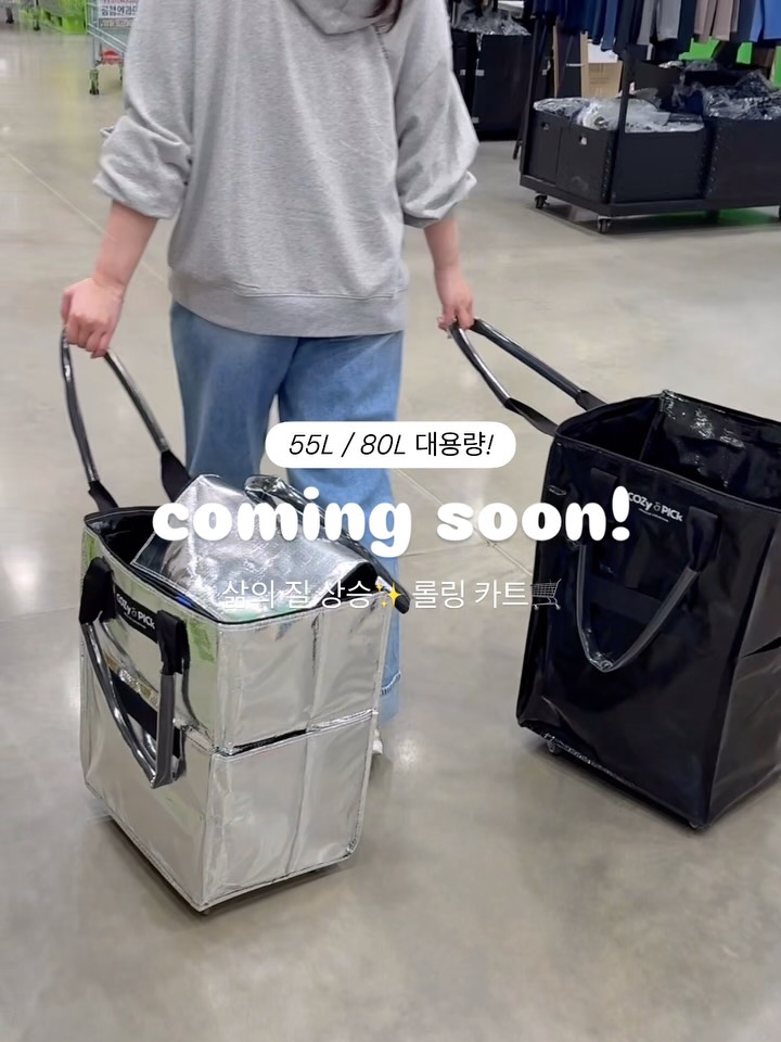 롤링 카트🛒 #공구예고 #댓글이벤트 저 처럼 매번 낑낑 어깨에 장바구니 들고 다니셨다면 💬댓글 남겨주세요! 3분께 롤링카트 선물로 드릴게요💖 (색상/사이즈 원하시는걸로 보내드려요!) 가격은 딱! 반값! 4만원대부터~ 소개드릴게요🙌🏻 🔔최저가 알림신청은 댓글 남겨주세요! 🛒용량 : 55L,80L 2가지! (더스트백 전원증정!) 🧡색상 : 블랙,실버,로즈골드(로즈는 80L만) 장 볼때 신세계를 경험하게 해준 롤링카트..🫢 한달정도 바퀴 테스트하고 드디어 소개드려요🙏🏻 시중에 비슷한 제품 많지만 바퀴 사용감이 정말 중요하거든요..! 제가 장볼때,여행갈때 막 굴리고 써봤지만 바퀴 빠지거나 헛돈적 없이🙅🏻♀️ 아주 잘 사용 중 입니다!! 🛒55L는 데일리용,가벼운 짐 넣을때 추천! 🛒80L 대용량은 대용량 마트,빨레방,분리수거할때 추천! ⭐️방수원단으로 비나 눈이와도 걱정❌ ⭐️보온/보냉 테스트 완료! ⭐️지퍼강도 테스트를(약 1000회) ⭐️유해물질불검출 테스트 ⭐️최대 50kg 하중 테스트 각종 시험성적서 완료된 스펙 갑! 롤링카트💚 4/15 수요일 내일 최저가로 만나요🙆🏻♀️ #장바구니 #코지앤픽