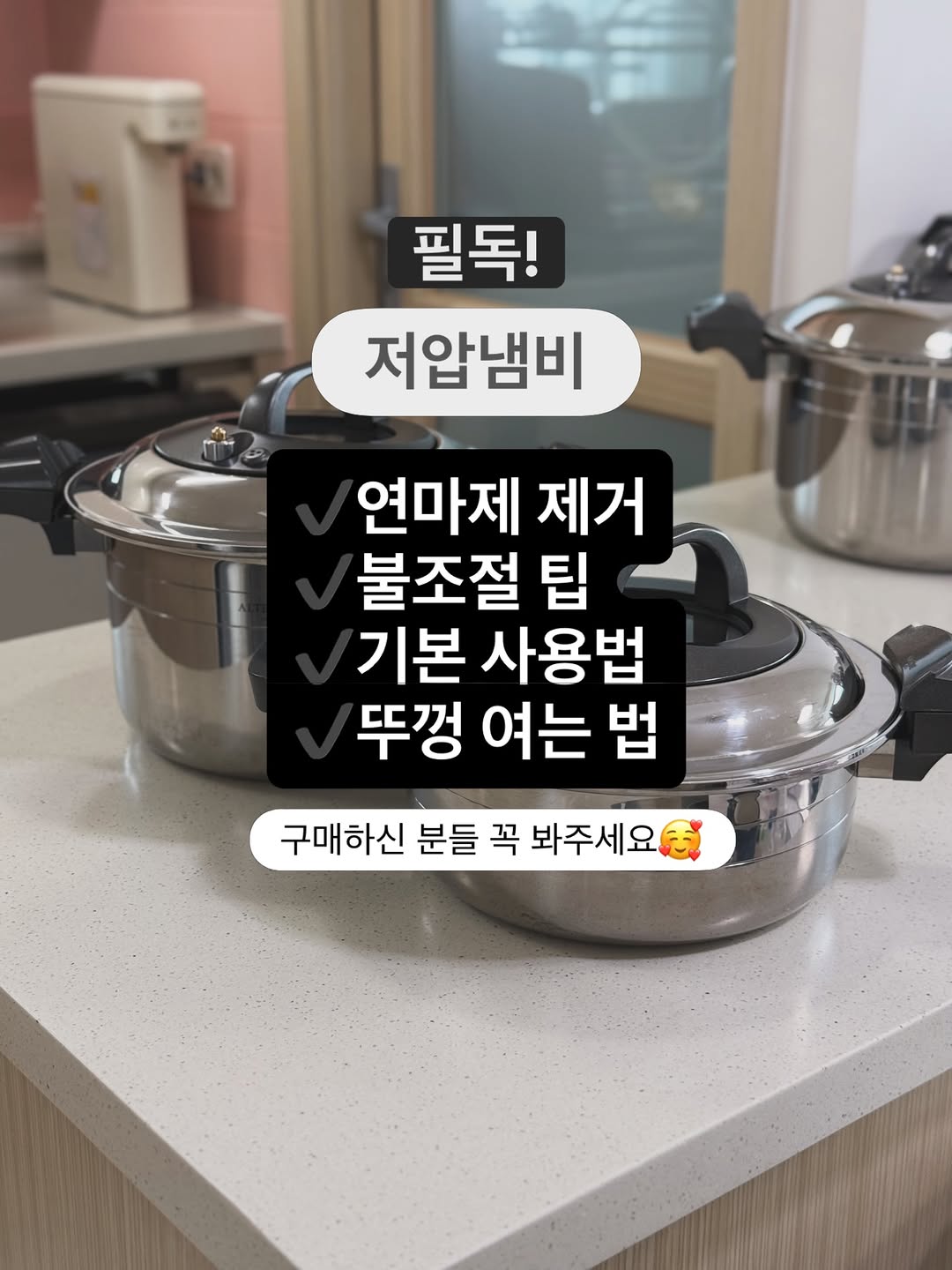 💨저압냄비 구매하신 분들은 꼭 알아두셔야 할 팁들! 저장해 두시면 나중에 궁금할 때 바로 찾아 보실 수 있어요 🍚밥 짓는 법도 추가로 올려드릴게요 꼼꼼히 봐주시고 궁금한 점 언제든 댓글 남겨주세요 요즘 디엠, 댓글이 너무 많아 답변을 못 드릴 때까 있어요 답변이 없을 땐 디엠 한 번만 더 문의 주시면 최대한 빨리 답변 드리도록 할게요🙏🏻 이번에도 많은 사랑 주셔서 정말 감사드려요🥹❤️ 저압냄비 레시피는 앞으로도 꾸준히 올려드릴게요 하이라이트에 다 모아두었으니 편하게 보셔요 우리 맛있는거 같이 해먹어요🥰 #저압냄비#저압냄비공구#저압냄비불조절