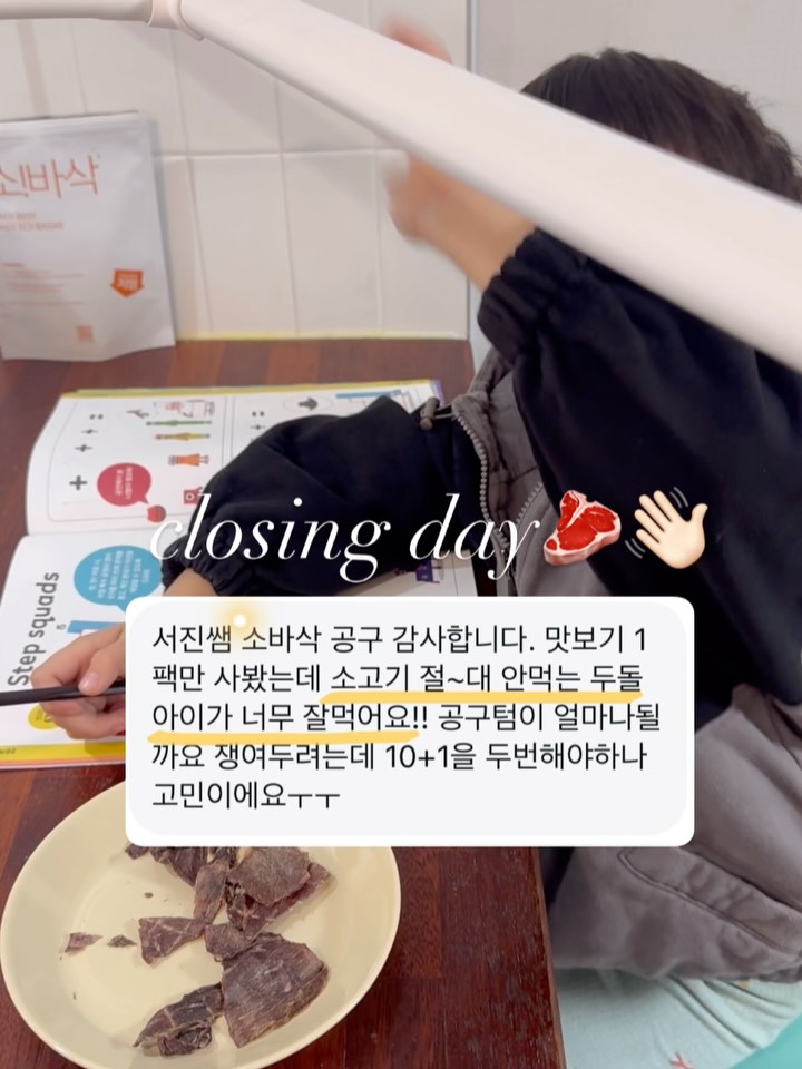 마감이후에 놓치신분들 연락 많이 주셨는데 아직 구매 가능해서 링크 다시 올려두었어요 (아마 월요일 오전에 본사 담당자님 출근해서 닫아주실듯 합니당🥹ㅎㅎ 얼른 막차 타세요) 연말에 새해 첫 날까지 있어서 홍보 아예 못했는데도 소바삭 주문 폭주한거... 저만 방학 간식 걱정된게 아닌가봐요ㅋㅋㅋ 오픈피드 놓치신분들 위해 막차알림 드립니다‼️ 특히 두돌 전후로 아가들이 잘 먹는다는 후기 미쳤음ㅋㅋ 다들 왜이렇게 귀여운거죠!?!? 심장아파.. 오물오물 너무귀엽구요... 넘 작고 예뻐서 눈물날것같아ㅠㅠㅠ 맛있는데 단백질이랑 철분까지 충전되는 건강한 간식이 있다는게 말이 되냐구요😳 심지어 어른이 먹어도 맛있어🥹 남편이랑 흑백요리사보면서 소바삭에 버터올려 먹는데 진짜 미슐랭 온 너낌~ 🥩🍷✨ㅋㅋㅋㅋㅋㅌㅌㅌ 저염에 바삭바삭 오래 씹을 수 있어서 맥주, 와인 안주로도 너무 좋아요ㅎㅎㅎㅎ 10+1 사비이벤트는 🎉서진쌤에서만 만날 수 있습니다아~!! 🎉 *처음이자 마지막 단독 혜택ㅎㅎ 무조건 받아가세요 아가들 새해 소고기 내가 챙겨주께 🫶🏻🥩🥩🥩 1봉만 사도 무료배송 무료반품인데 그동안 소고기칩 궁금하셨던 분들은 안 사볼 이유가 없지않나요?ㅎㅎ 📦 다른공구보다 혜택이 좋은 공구라 연장은 어려우니까 고민하셨던 분들은 이번기회 놓치지 말아주세요 ㅎㅎ♥️ 공구텀은 4개월! 생각해주세요🙏🏻 (다른분들이 항의 너무 많이 하셔서.. 10+1 사비이벤트 다음엔 어려울수있어서 이번에 넉넉히 쟁여주세요🥲) 🥩가격안내 및 구매는 프로필 링크로 와주세용🥩 🙋♀️자주 묻는 질문!! 👇🏻👇🏻👇🏻 Q. 타제품 기준 좀 비싼거 아닌가요? A. 용량이 다릅니다! 대부분의 타사 소고기칩은 25g 소바삭은 40g기준이라 그램수로 계산해주시면 25g 기준 8천원대입니다 :) Q.10팩 구매했다 1봉먹고 안맞으면 1봉은 어떻게 결제되나요? A.최다구성 10팩 공구가로 1팩만 결제 (약 13,000원대)됩니다. 나머지 9팩은 그대로 포장해두시면 반품해가고 9/10 금액 반품해드려요. Q.무항생제 소고기인가요? A.네. 무항생제 인증을 받은 호주산 목초육(그래스페드)입니다. Q. 몇 개월부터 먹을 수 있나요? A. 바삭한 식감이라 어금니가 일찍 난 15개월 정도의 아이들이나 그 이전의 아이들도잘 먹고있다는 후기들이 종종 있지만 추천연령은 24개월로 안내드리고 있습니다. 🙋♀️보관 및 섭취 꿀팁! 👇🏻 직사광선이 닿지 않고 건조한 곳에 보관 해 주세요 개봉 후 오랫동안 드시고 싶으시다면 냉동 보관하는것도 좋습니다 눅눅해졌다면 전자렌지 30초 또는 에어프라이어 1분 돌려주시면 바삭하게 먹을 수 있어요 #소고기칩공구 #소고기칩 #소바삭공구