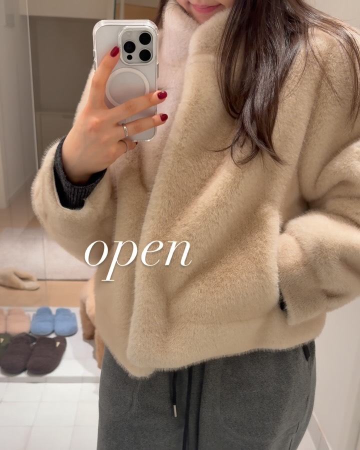 #오픈 #구매완료이벤트 제 찐픽! 에코퍼 자켓 오픈합니다. 🐏🖤 올해 첫 진행이자 마지막이고, 앵콜은 없습니다! 🎟️ 구매완료 + 휴대폰 뒷 4자리 남겨주시면, 50분 추첨하여 울 블랜딩 숄 선물로 드립니다! 20만원대 퀄리티 진짜 깜짝 놀라요... 제 안목을 믿으셔도 됩니당 웜브라운은 단독 컬러도 함께 개발 하였구요. 그만큼 제 원픽이에요. 베이지는 차분하면서 단정! 블랙은 언제나 기본이죠 ㅎㅎ ✍🏻 제 솔직 리뷰! 리얼 밍크 부담스럽고, 과하지 않은 퍼, 그리고 유행 안타는 퍼 자켓 찾으신분들! 강추 입니다. 넥이 적당히 올라와서 답답함 없이 완전 따뜻하구요. 가볍지만 왕왕 따숩… 진짜 너무 예쁜데 따뜻해서 반해요.. 털 날림 거의 없습니다. 완전 초반에만 재단하면서 묻은 털 정도? 앙고라 니트 처럼 계속 빠지고 계속 묻어남 없어요! ㅎㅎ 간혹 퍼 자켓에 지퍼가 달리면 조금 저렴해보일 수 있는데 히든 단추라 완전 고급져요. 카라 부분도 자석이 히든으로 들어가있어서 깔끔! 기장감은 딱 엉덩이 선까지 오는 많이 크롭하진 않지만 적당한 기장감이에요! 160cm / 49kg > 모두 SM 입었어요! 세탁은 드라이크리닝 하시면 됩니다. 🐾 리얼 밍크급 터치감 고퀄리티 에코 밍크 원단 + 염색 공정으로 깊은 컬러 > 풍성한 볼륨감과 고급스러운 촉감 🔥 가벼운데도 확실한 보온성 촘촘한 밑모 + 안감과 부담 없는 무게감으로 어깨 편하고 데일리로도 OK > 가벼우면서 따듯해요 🏅 36년 경력 퍼 장인 제작 리얼 퍼 공정과 에코퍼 공정을 결합 > 내구성과 고급스러움까지 디테일하게 표현 👗 부해 보이지 않는 핏 퍼 결·볼륨은 살리고 라인은 깔끔하게 정돈된 실루엣 🧵 안 보이는 부분까지 고급 마감 커스텀 안감 + 메탈 후크 수작업 고정으로 완성도 업 🌿 윤리적 소비 + 럭셔리 무드 동물 희생 없이 리얼 밍크 무드 그대로 즐기는 프리미엄 에코퍼