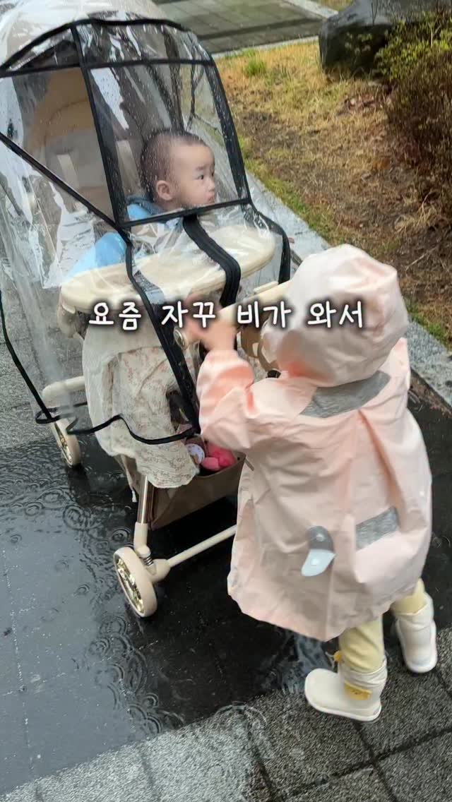 비오는 날 산책 🌧️ 저희는 작년에도 비올 때 자주 산책했는데 둘째가 태어나니 좀 주저했었거든요 👀 근데 이번에 산 유모카에 레인커버가 있어 하원하고 도전했어요 .ᐟ (유모카는 4/11 공구 예정) 작년에 입던 우비라도 너~무 좋아하는거 보고 나가길 잘했다 생각했어요 😎 비오는날은 찰박찰박 소리도 좋고 비 냄새, 식물들 색감 등 너무너무 오감 자극할 부분이 많아요 .ᐟ 꼭 한번 도전 해보세요 🙌🏻 우비, 장화는 5월 중 오픈 예정입니다아 .ᐟ #아기우비 #비오는날산책☔️