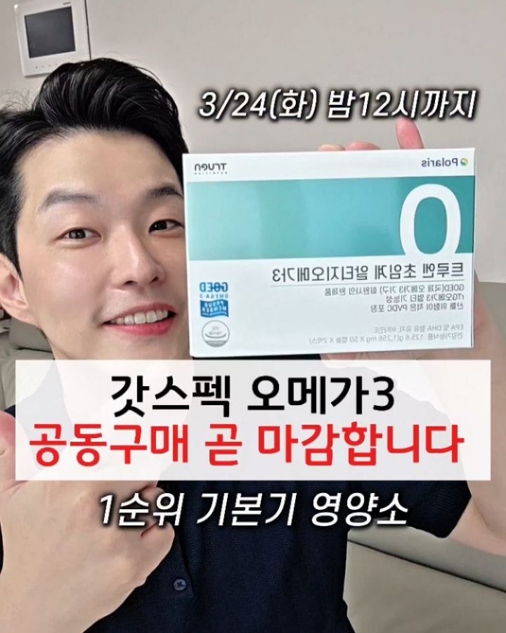 🔻공동구매 마감안내🔻 갓 생산된 신선한 제품을 보내드리는 "갓스펙 오메가3 1000mg" ✔️ 공동구매 곧 마감합니다 기본기 필수 영양소 계속 말씀드려서 이제는 다들 잘 챙기실거라 생각합니다 :) "오메가3, 미네랄(칼마디), 비타민군" 아직 기본기 없이 다른 영양소들을 먼저 챙기고 계시다면 기본기 점검 한번씩은 꼭 해주세요 🙏 기본기 없는 영양제 셋팅은 모래 위에 성을 쌓는 꼴입니다 환절기 감기 조심하시고 즐거운 봄날 되세요 항상 함께해 주셔서 감사드립니다 실망없는 정보와 제품으로 보답 하겠습니다 🫡✨️ @yak_secret 📍이런분들께 추천드립니다. ▪️중성ㅈl질(ㅈl방대사) 개선이 필요하신 분들 ▪️혈액 순환 개선을 원하시는 분들 ▪️눈이 건조하고 피로하신 분들 ▪️기억력 같은 뇌 기능 개선 ▪️만성적 불편으로 몸이 예전 같지 않으신 분들 ➡️ 이 외에도 잘 만든 오메가3의 ➡️ 엄청난 효과들 기억나시죠? 📍이런 제품입니다 ▪️비린 맛 굉장히 잘 잡았습니다. ▪️프랑스 프리미엄 원료사인 폴라리스 원료 ▪️산패 없는 저온 초임계 추출방식 ▪️흡수율을 극대화한 알티지(rTG)구조 ▪️산패도, 중금속 인증 다 받은 제품입니다 ▪️1알당, EPA+DHA 합 1000mg #오메가3 #알티지오메가3 #오메가3추천 #트루엔오메가3 #오메가3공구