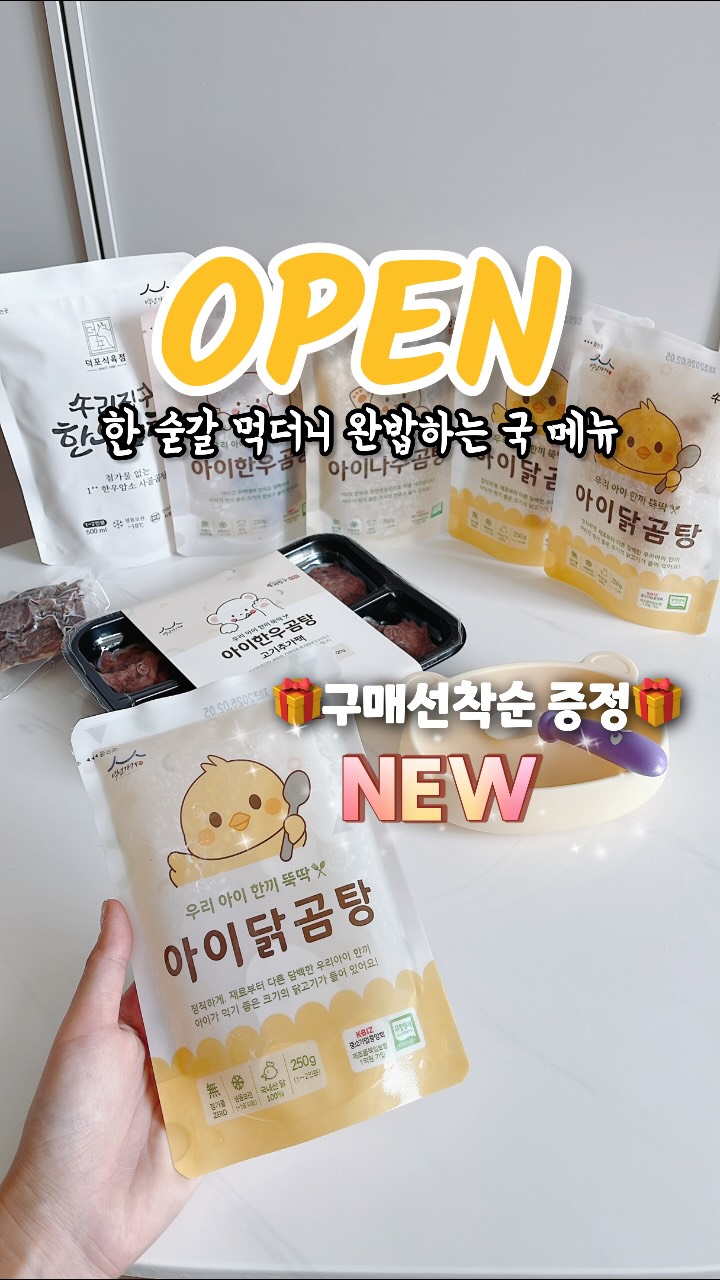 밥태기에 빠질 수 없는 국메뉴 #공구오픈 📌 “링크” 댓글 남기면 구매링크 바로 DM드려요. 🔻🔻🔻이번 공구 가장 큰 혜택 3세트 구매 추천!! 무료배송 + 제일 저렴 + 최대혜택 6년째 진행 중인 무항생제 아이곰탕 공구 드디어 오픈합니다. 그리고 이번엔 ⭐️NEW 무항생제 아이닭곰탕 추가⭐️ ✔ 진한 1++ 무항생제 한우곰탕 ✔ 맑은 나주식 곰탕 ✔ 담백한 무항생제 아이닭곰탕 이제 취향대로 선택하세요💛 1️⃣ 구매 선착순 이벤트 : 30명 🎁 신제품 아이닭곰탕 1팩 증정 (👉🏻 곰탕 제품 종류 상관없이 주문 1건 당 1팩 증정) 선착순이벤트로 더 혜택 챙겨가세요🥰 2️⃣ 3세트이상 구매이벤트 ⭐️강력추천⭐️ 곰탕제품 종류 상관없이 3세트이상 구입하시면, “아이한우곰탕” 1팩증정 + 네이버포인트 2,000원 ** 2/26~2/28 단3일간만 진행 🔺🔺🔺1️⃣ & 2️⃣ 이벤트 중복 증정가능 (구매선착순, 3세트이상구매자 이벤트 중복 증정가능) 3️⃣ 2세트 이상 구매자랜덤 이벤트 : 20명 곰탕제품 종류 상관없이 2세트이상 구입하시면, “아이한우곰탕” 1팩증정!(20명) 4️⃣ 구매완료 후기 댓글이벤트 구매완료+연락처뒤4자리 or 후기 남겨주세요. 추첨을 통해 선물을 드릴게요. 👉🏻스토리인증 후 @j_heeya___ 태그 시 당첨확률 업 🎁 아이한우곰탕 1세트(6팩) : 2명 ⭐️NEW⭐️ 무항생제 아이닭곰탕 세트 👉🏻 무항생제 닭고기 포함 250g * 6팩 무항생제 국내산 냉장닭 사용 ✨결대로 잘게 찢은 고기✨ + 소화에 좋은 무 🟡무항생제 아이나주곰탕 세트 👉🏻1++한우 고기 포함 250g * 6팩 무항생제 한우(양지, 사태) + 무, 파 로 끓여낸 맑은 나주식 곰탕 하나하나 ✨결대로 직접 찢은 고기✨가 들어가 더 부드러워요. 🟡 무항생제 아이한우곰탕 세트 👉🏻1++한우 고기 포함 230g * 6팩 무항생제 한우(한우사골, 잡뼈 / 한우정육)으로 진하게 끓여낸 뽀얀 국물의 곰탕 하나하나 ✨결대로 직접 찢은 고기✨가 들어가 더 부드러워요. 🟡 우리집 한우곰탕세트 👉🏻한우곰탕 국물 500ml * 4팩 & 1++ 한우 암소 양지/사태살 수육 50g * 4팩 ➕고기추가팩 추가옵션에서 함께 구매 가능하며 한정수량입니다. 아이곰탕에 들어가는 1++한우 무항생제 고기 120g(20gx6구 구성) 🏷️택배사 : 롯데택배 🏷️배송비 : 4,000원(7만원 이상 무료배송) 🏷️배송일 : 2/26(목)부터 주문순서대로 순차 출고 *주말 수령 불가 시 배송요청사항에 적어주세요. 📍구매하기 ➔ @j_heeya___ 프로필링크 클릭