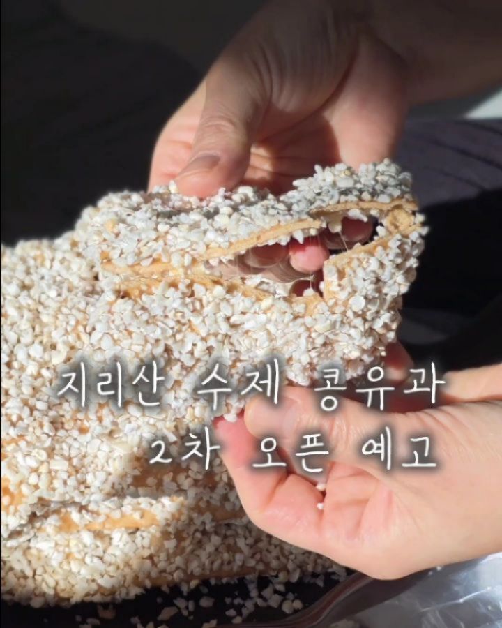 지리산 수제 콩유과 2차 예고편 2차 오픈은 1월 16일 금요일 저녁8시입니다. 지리산 콩유과 기다리시는 분들!! 댓글에 ‘콩유과’ 남겨주세요. 오픈시 알림 드릴게요😚 댓글 남겨주시면 추첨하여 1.5kg 선물로 보내드리겠습니다. 2차 오픈과 동시에 당첨자 발표할게요😍!! ──────────── 지리산 수제 콩유과 / 전선생 단독진행 ➡ 1박스 : 1.5kg ➡ 공구일정 : 1월 16일(금) 밤 8시 ➡ 지정일 발송요청 불가합니다 🚫 ──────────── 암암리에 소개로만 주문을 받는 콩유과집이에요. 지리산에서 어르신들이 쌀농사, 콩농사를 지어서 수확한 쌀과 콩으로 반죽하고 조청도 직접 졸여서 콩유과 제작까지 전부~~~~ 다 손수 진행합니다. 365일 판매하지 않고 딱 설날 전에만 만들어 판매하시는데~ 온라인에는 판매를 하신 적이 아예 없고 오직 전선생에게만 공구를 허락해주셨어요. (3년차네요 ㅎㅎ) 하루에 딱 50박스만 만들 수 있어서 제작 수량이 많지 않아요😭 직접 농사지은 원물만 사용하니 당연히 국산 100% 無방부제, 無첨가물, 수제 공정100% 수제다 보니 모양이 다 제각각이에요. 일반 유과와 다른점은~ ➡ 콩가루 함량이 높아요. 그래서 굉장히 부드러운 편이예요. 어린 아이들부터 임플란트 하신 어르신까지 모두 맛있게 드실 수 있는 질감이구요. 이에 달라붙지 않고 솜사탕처럼 사르륵 잘 녹고요. 수제 조청을 사용했기 때문에 달콤하고 고소한 맛입니다. ──────────── 예쁜 선물포장은 힘들어요 😭 투박하게 한봉지에 차곡차곡 담아 보내드립니다. 나와 내가족들이 맛있게 드실 분들께만 추천드려요! 개인적인 입맛으로 인한 단순변심(반품)은 불가합니다. 배송일 지정 불가❌ (택배발송도 어르신들이 진행하기에 도중에 취소하거나 요청하시면 업무가 굉장히 마비 되어버립니다😭 넓은 이해 부탁드려요🙏) 참고 부탁드려요!! ──────────── * 소비기한 : 제조일로 부터 6개월 - 개봉 후 서늘한 실온 보관 - 오랜시간 보관시 냉동 보관 - 냉동보관시 먹기전에 미리 꺼내두면 먹기좋게 사르르 녹습니다! ──────────── #콩유과 #지리산콩유과 #수제유과 #수제한과 #지리산유과